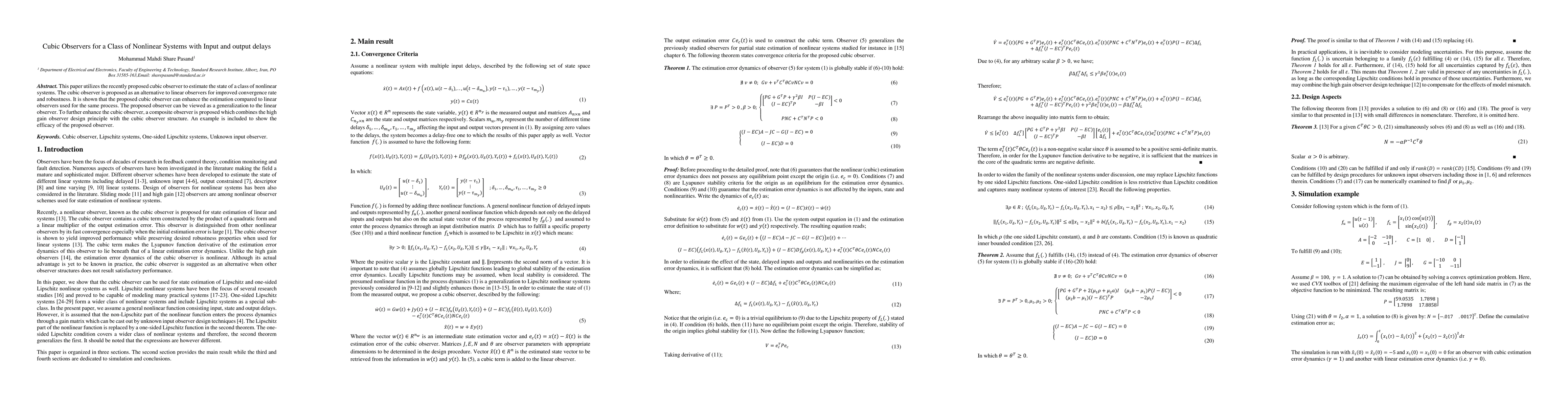 A new cubic observer is proposed to estimate state in a class of nonlinear systems with input and output delays, offering improved convergence rate and robustness compared to linear observers.