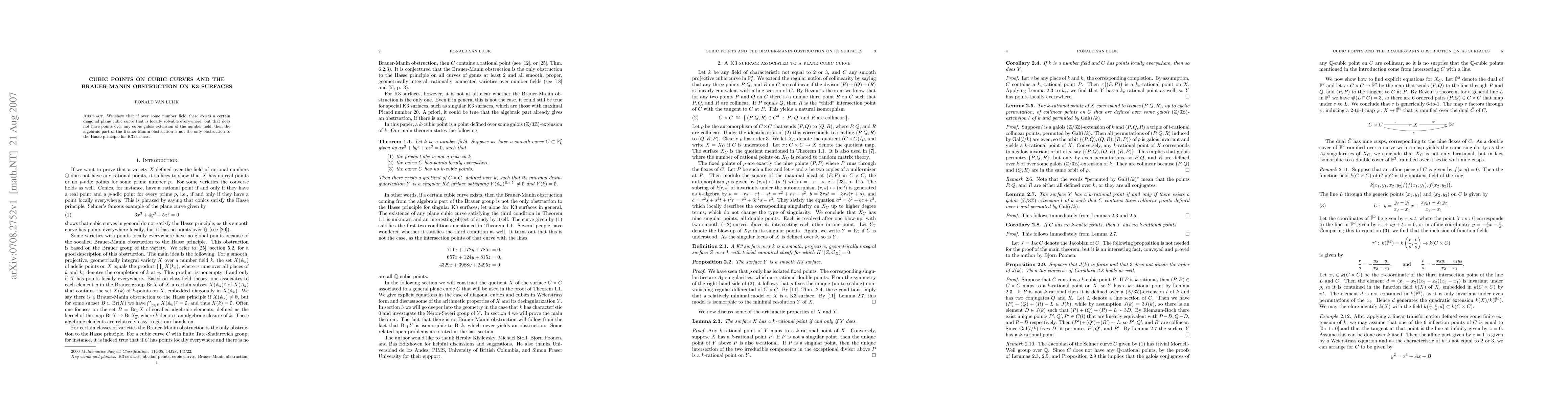 Summary: The paper demonstrates that the presence of a locally everywhere solvable diagonal plane cubic curve without points in any cubic Galois extension implies that the algebraic Brauer-Manin obstruction is not the sole hindrance to the Hasse principle for K3 surfaces over number fields.