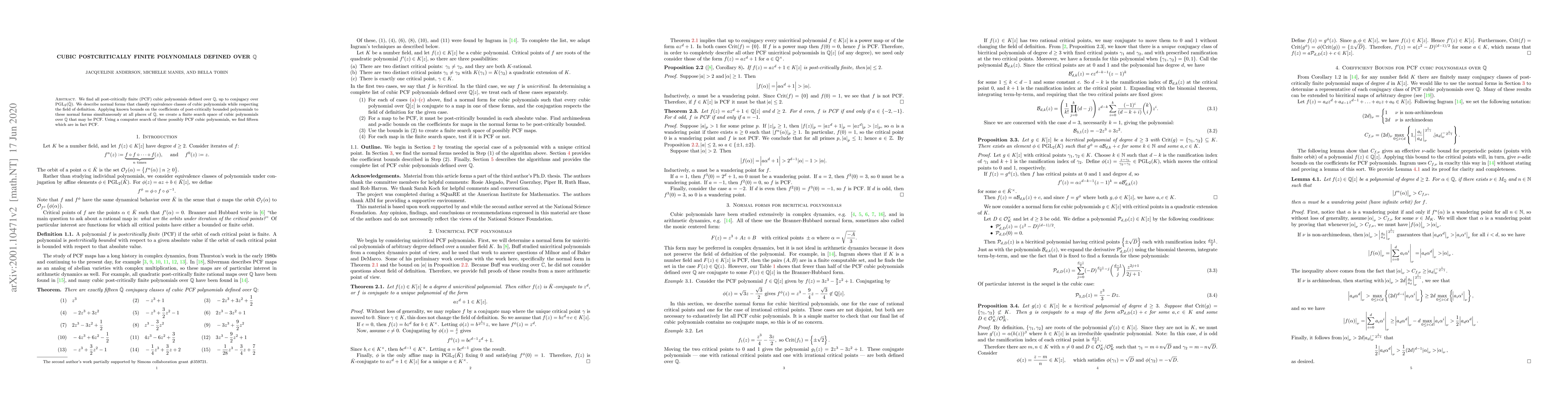 This paper develops an algorithm to identify all post-critically finite cubic polynomials over rational numbers, classifying them by conjugacy. It finds fifteen such polynomials by reducing the search space using normal forms and bounds on coefficients.