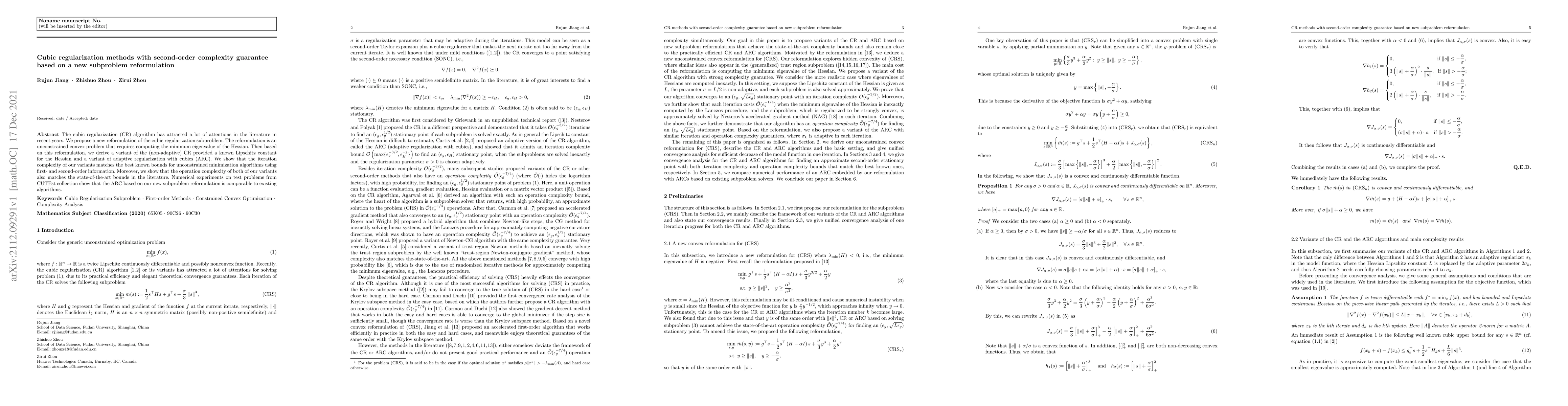 Researchers propose a new reformulation of cubic regularization that reduces computational complexity while maintaining second-order efficiency, outperforming existing algorithms in numerical experiments.
