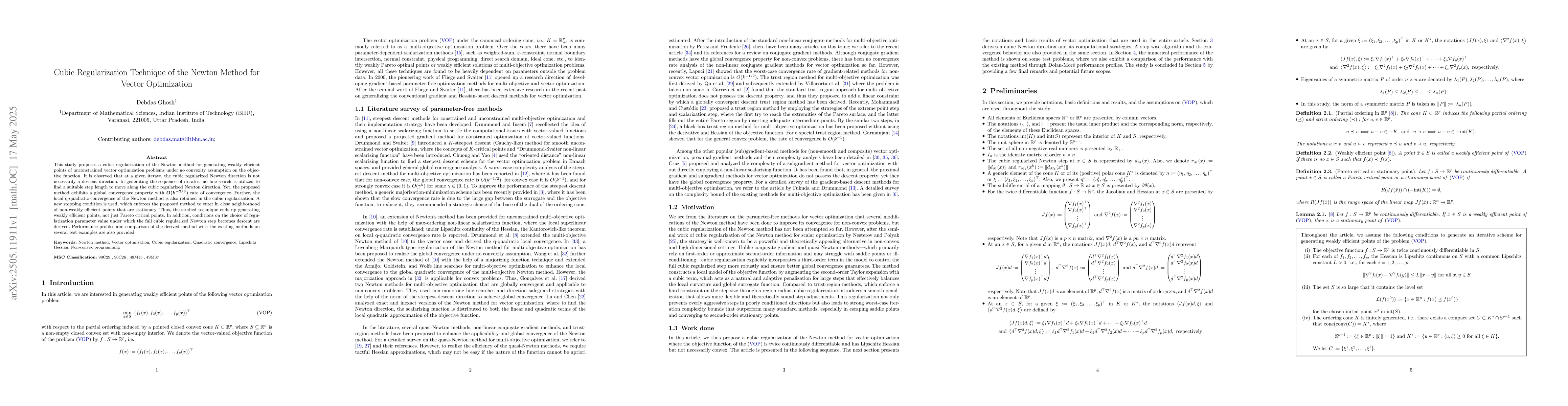 The paper proposes a cubic regularization of the Newton method for vector optimization problems, generating weakly efficient points without convexity assumptions.