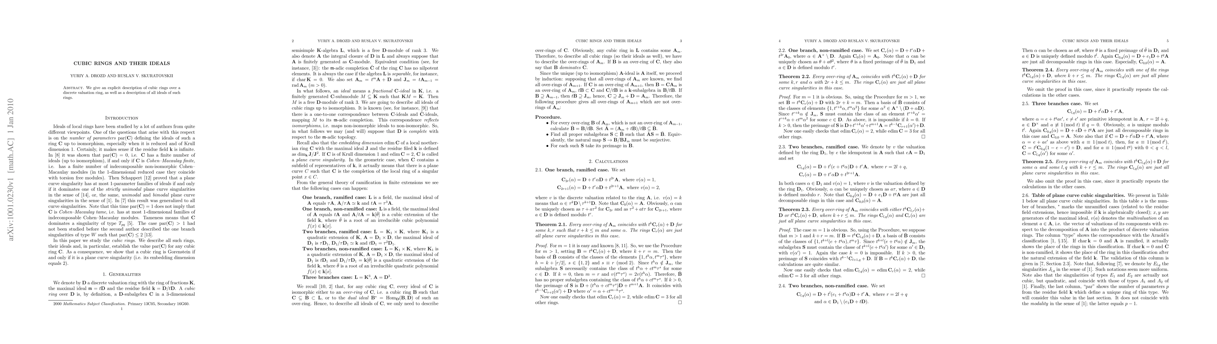 We give an explicit description of cubic rings over a discrete valuation ring, as well as a description of all ideals of such rings.