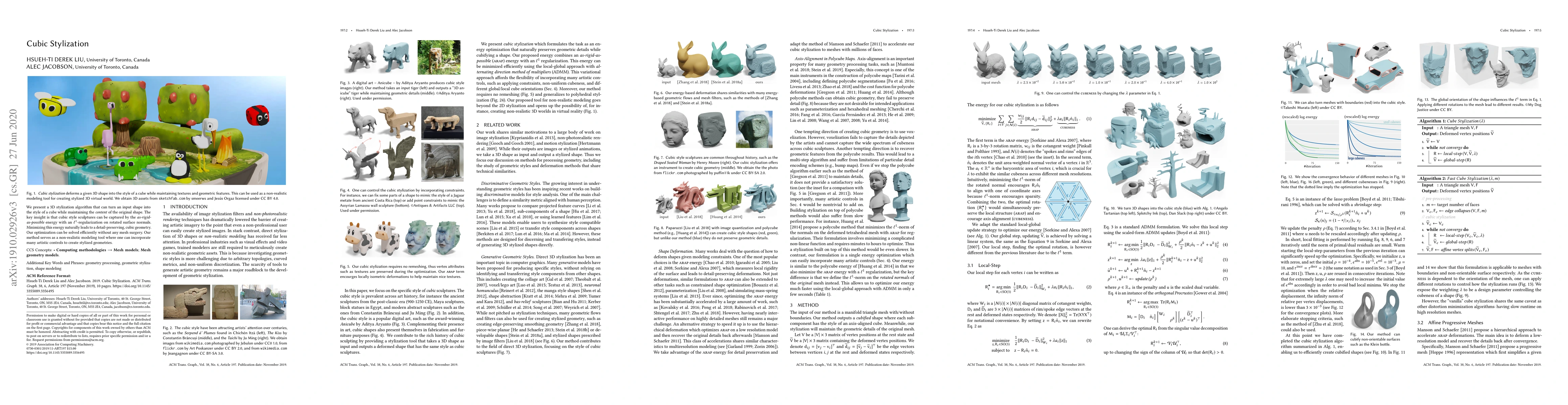 We present a 3D stylization algorithm that can turn an input shape into the style of a cube while maintaining the content of the original shape. The key insight is that cubic style sculptures can be captured by the as-rigid-as-possible energy with an l1-regularization on rotated surface normals. Minimizing this energy naturally leads to a detail-preserving, cubic geometry. Our optimization can be solved efficiently without any mesh surgery. Our method serves as a non-realistic modeling tool where one can incorporate many artistic controls to create stylized geometries.