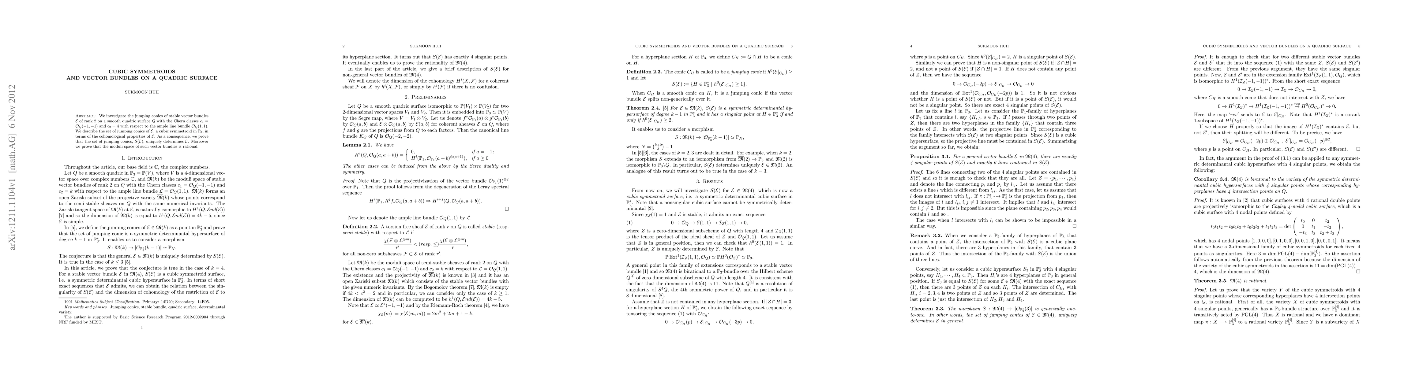 Summary: The paper examines the jumping conics of rank 2 vector bundles on a smooth quadric surface, showing that the set of these conics uniquely determines the bundle and proving the rationality of the moduli space of such vector bundles.