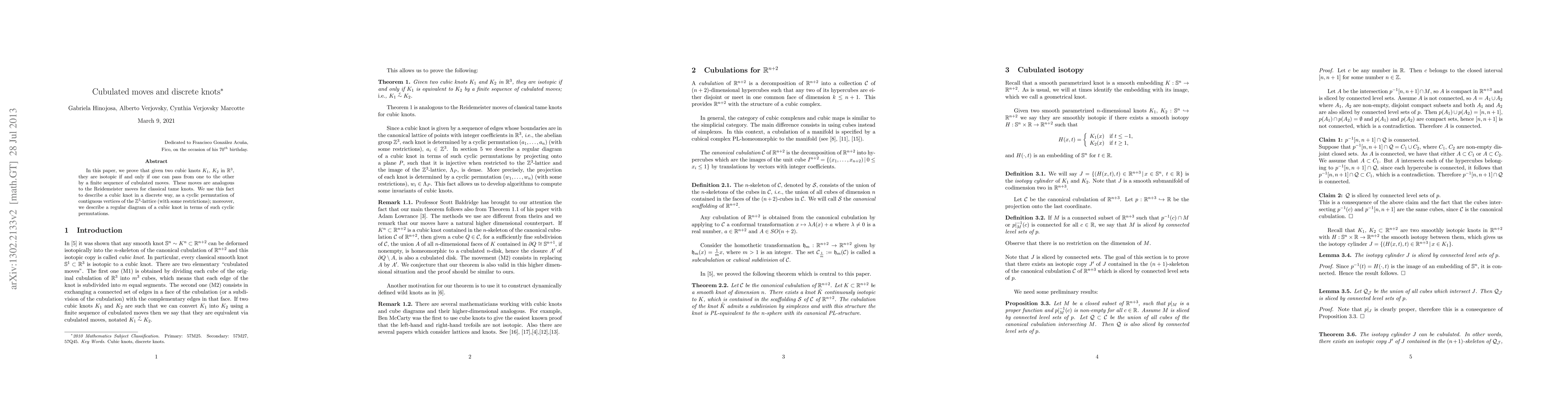In this paper, we prove than given two cubic knots $K_1$, $K_2$ in $\mathbb{R}^3$, they are isotopic if and only if one can pass from one to the other by a finite sequence of cubulated moves. These moves are analogous to the Reidemeister moves for classical tame knots. We use the fact that a cubic knot is determined by a cyclic permutation of contiguous vertices of the $\mathbb{Z}^3$-lattice (with some restrictions), to describe some of the classic invariants and properties of the knots in terms of such cyclic permutations, by projecting onto a plane such that it is injective when restricted to the $\mathbb{Z}^3$-lattice and the image of the $\mathbb{Z}^3$-lattice is dense.