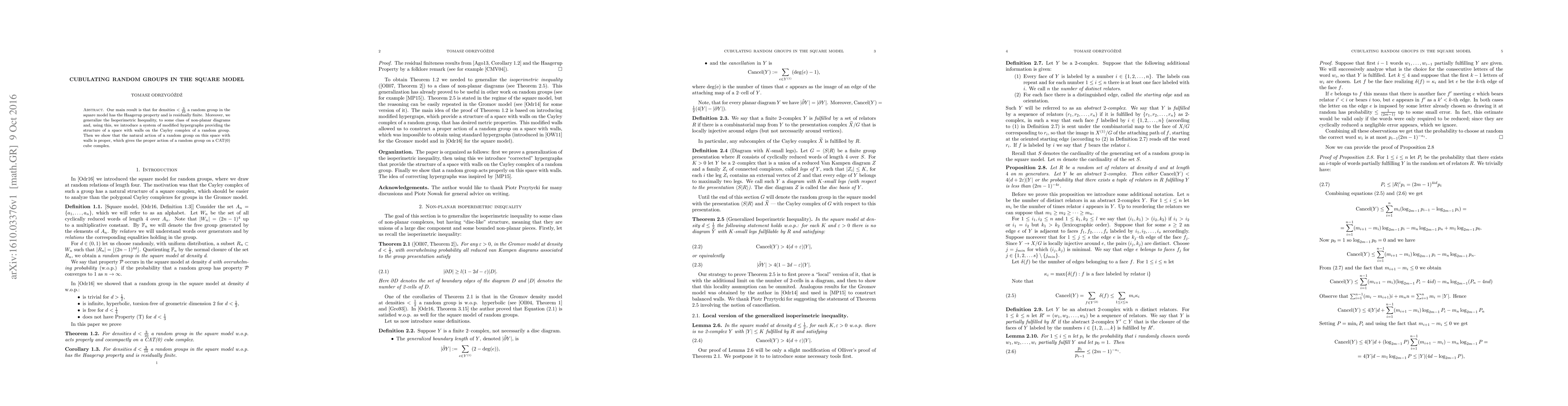 A random group in a square model has the Haagerup property and residually finite structure for densities < 3/10, enabling proper actions on CAT(0) cube complexes.