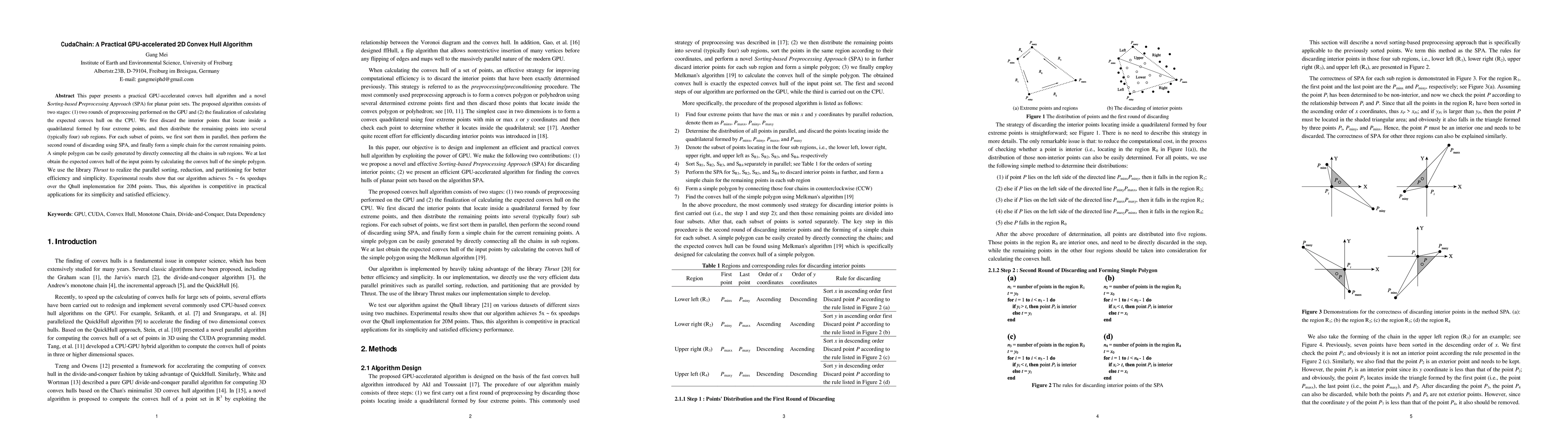 CudaChain introduces a novel SPA and efficient GPU-based preprocessing for convex hull computation, combined with a simple CPU finalization step.