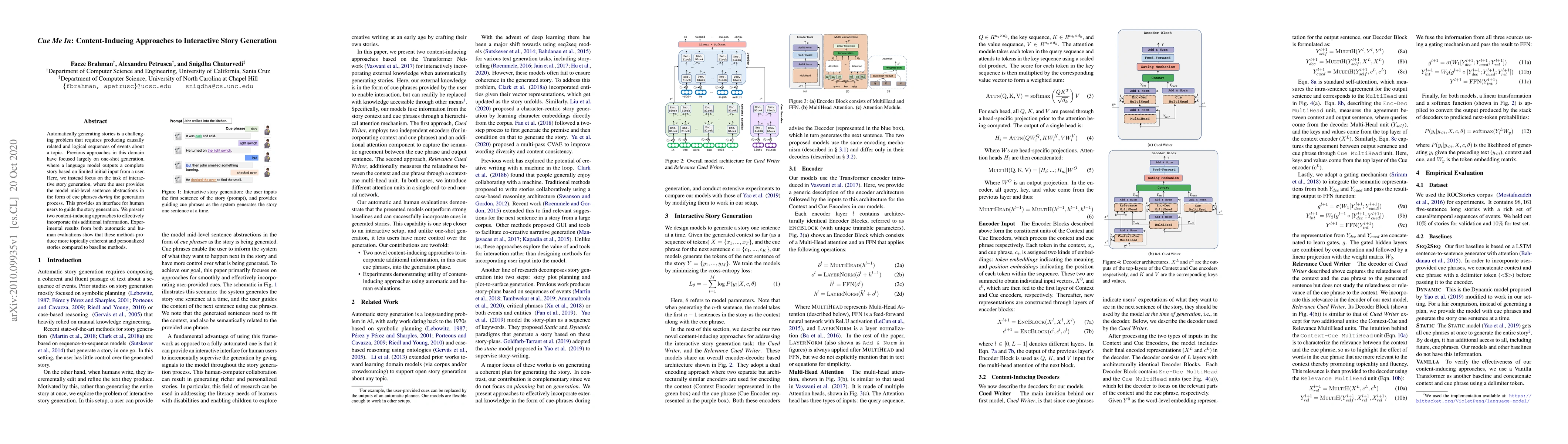 This paper explores interactive story generation where users provide mid-level sentence abstractions, or cue phrases, to guide the model. It presents two content-inducing approaches that incorporate this user input, resulting in more coherent and personalized stories compared to baseline methods, as shown by both automatic and human evaluations.
