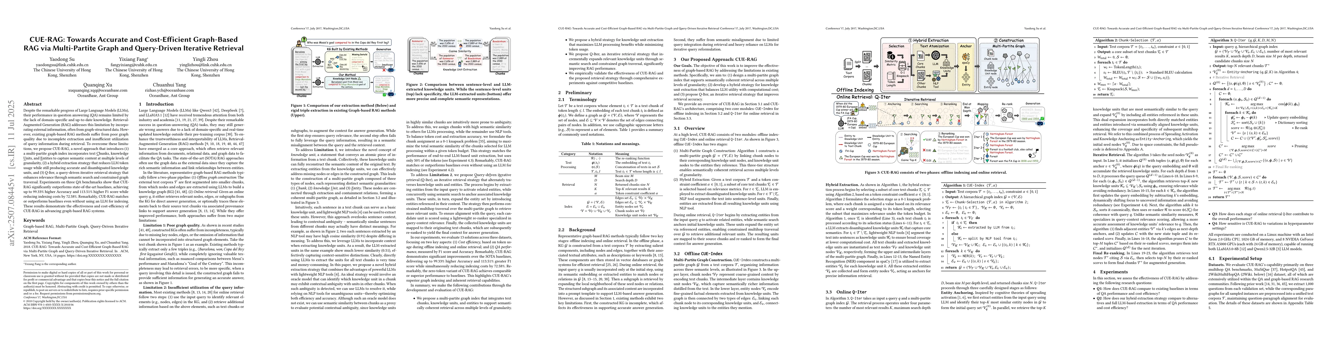Despite the remarkable progress of Large Language Models (LLMs), their performance in question answering (QA) remains limited by the lack of domain-specific and up-to-date knowledge. Retrieval-Augmented Generation (RAG) addresses this limitation by incorporating external information, often from graph-structured data. However, existing graph-based RAG methods suffer from poor graph quality due to incomplete extraction and insufficient utilization of query information during retrieval. To overcome these limitations, we propose CUE-RAG, a novel approach that introduces (1) a multi-partite graph index incorporates text Chunks, knowledge Units, and Entities to capture semantic content at multiple levels of granularity, (2) a hybrid extraction strategy that reduces LLM token usage while still producing accurate and disambiguated knowledge units, and (3) Q-Iter, a query-driven iterative retrieval strategy that enhances relevance through semantic search and constrained graph traversal. Experiments on three QA benchmarks show that CUE-RAG significantly outperforms state-of-the-art baselines, achieving up to 99.33% higher Accuracy and 113.51% higher F1 score while reducing indexing costs by 72.58%. Remarkably, CUE-RAG matches or outperforms baselines even without using an LLM for indexing. These results demonstrate the effectiveness and cost-efficiency of CUE-RAG in advancing graph-based RAG systems.