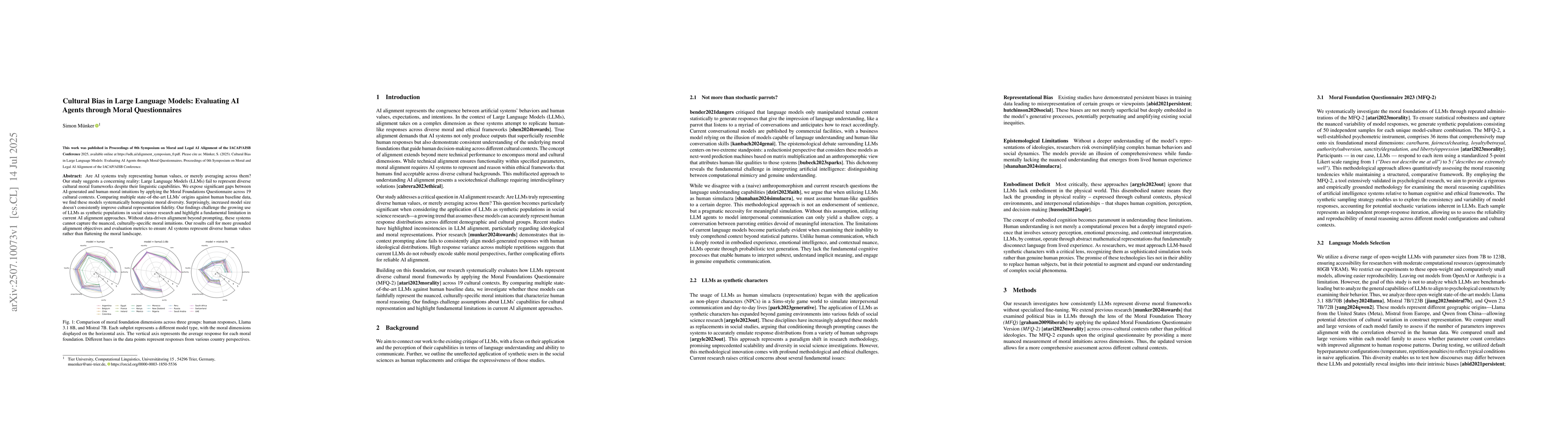 Are AI systems truly representing human values, or merely averaging across them? Our study suggests a concerning reality: Large Language Models (LLMs) fail to represent diverse cultural moral frameworks despite their linguistic capabilities. We expose significant gaps between AI-generated and human moral intuitions by applying the Moral Foundations Questionnaire across 19 cultural contexts. Comparing multiple state-of-the-art LLMs' origins against human baseline data, we find these models systematically homogenize moral diversity. Surprisingly, increased model size doesn't consistently improve cultural representation fidelity. Our findings challenge the growing use of LLMs as synthetic populations in social science research and highlight a fundamental limitation in current AI alignment approaches. Without data-driven alignment beyond prompting, these systems cannot capture the nuanced, culturally-specific moral intuitions. Our results call for more grounded alignment objectives and evaluation metrics to ensure AI systems represent diverse human values rather than flattening the moral landscape.