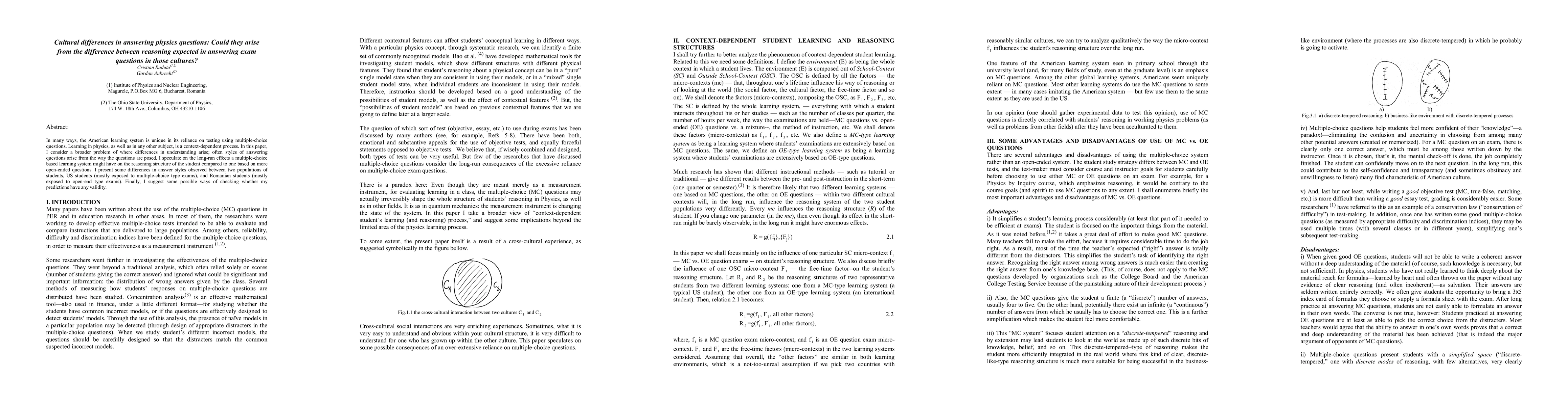 In many ways, the American learning system is unique in its reliance on testing using multiple-choice questions. Learning in physics, as well as in any other subject, is a context-dependent process. In this paper, I consider a broader problem of where differences in understanding arise; often styles of answering questions arise from the way the questions are posed. I speculate on the long-run effects a multiple-choice based learning system might have on the reasoning structure of the student compared to one based on more open-ended questions. I present some differences in answer styles observed between two populations of students, US students (mostly exposed to multiple-choice type exams), and Romanian students (mostly exposed to open-end type exams). Finally, I suggest some possible ways of checking whether my predictions have any validity.