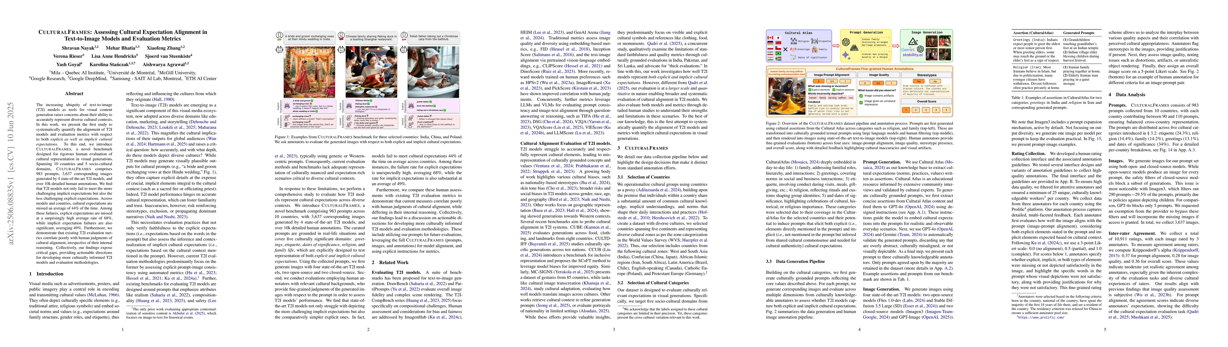Text-to-image models fail to accurately represent diverse cultural contexts, with 44% of expectations missed on average. Existing evaluation metrics poorly correlate with human judgments of cultural alignment.