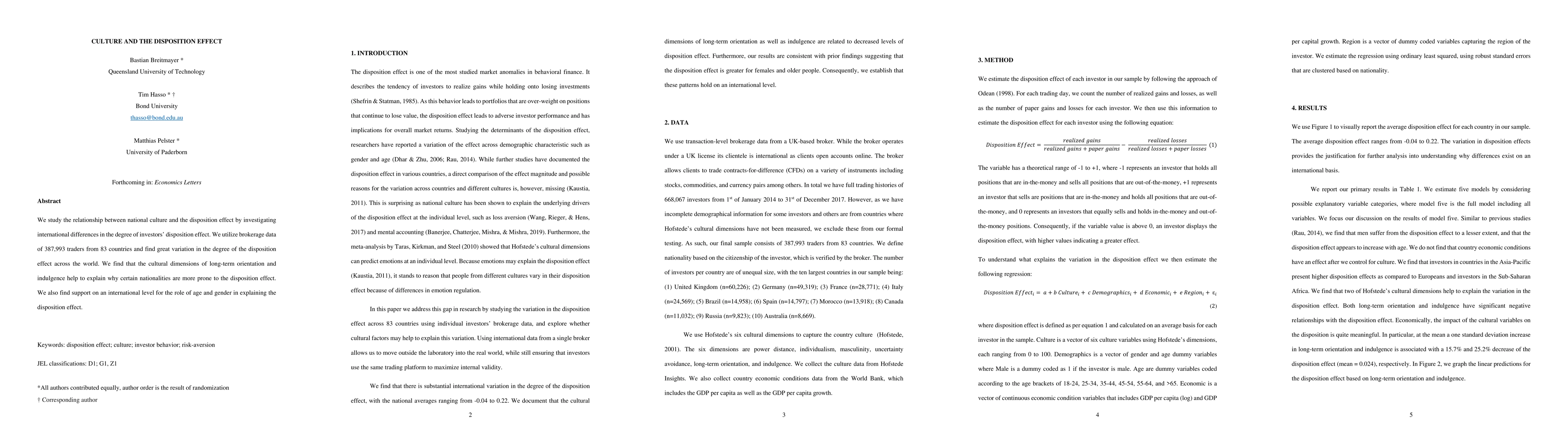 This study explores how national culture influences the disposition effect among investors, revealing significant international variations. Cultural dimensions like long-term orientation and indulgence, along with age and gender, are identified as key factors explaining these differences.