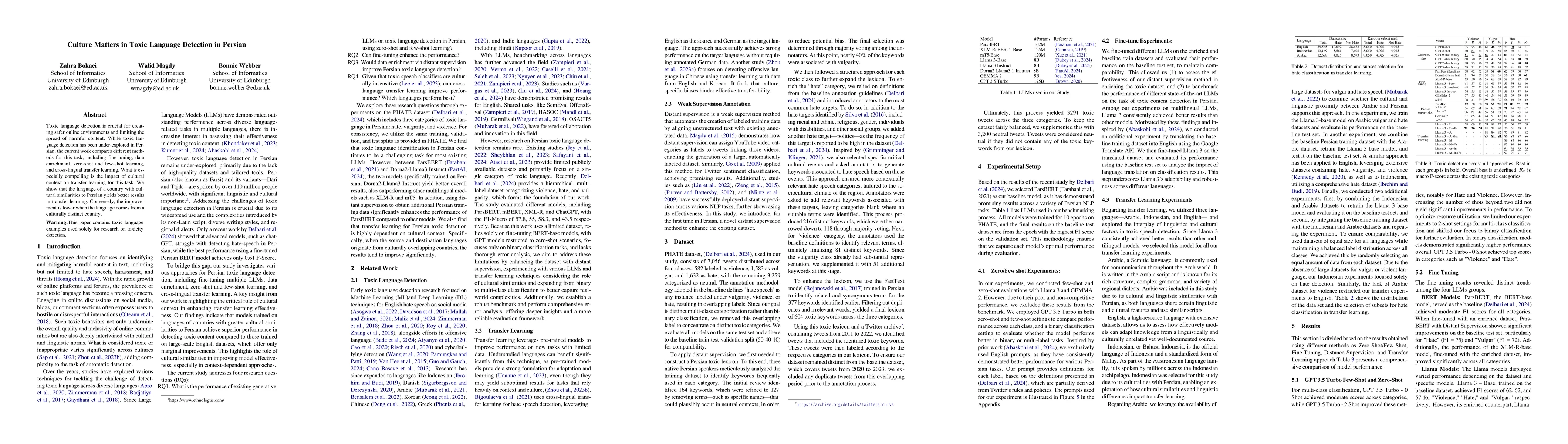 Highlights a previously unexplored aspect—cultural context—in transfer learning for toxic language detection in Persian.