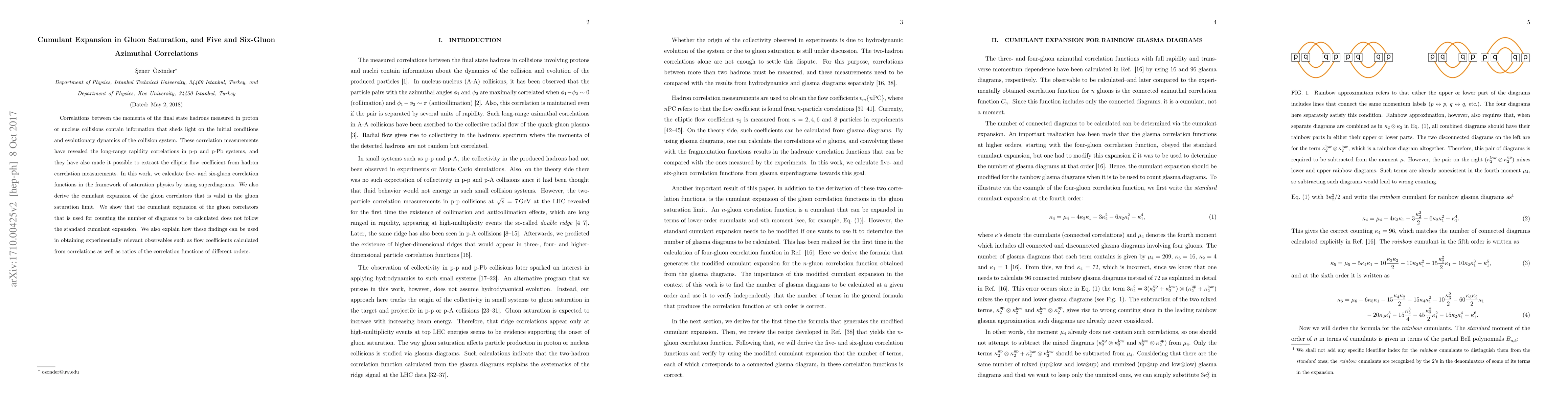 This paper calculates five- and six-gluon correlation functions in the context of gluon saturation using superdiagrams and derives a cumulant expansion valid in the gluon saturation limit. It highlights that the cumulant expansion used for counting diagrams differs from the standard form and discusses its implications for extracting experimentally relevant observables such as flow coefficients and correlation function ratios.