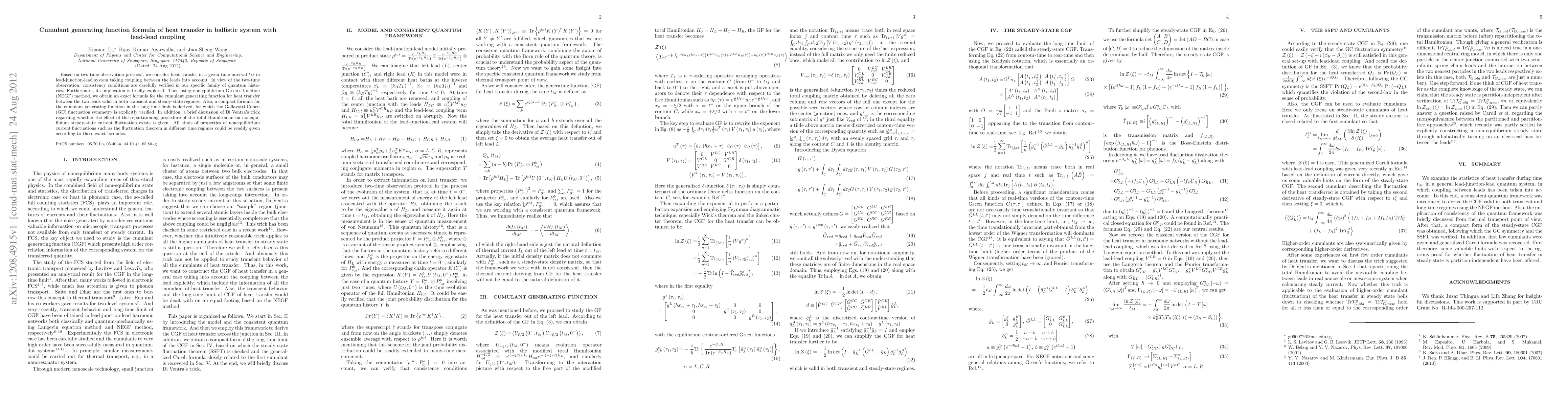 This paper derives an exact formula for the cumulant generating function of heat transfer in a lead-junction-lead system using the nonequilibrium Green's function method, valid for both transient and steady-state regimes. It also verifies the Gallavotti-Cohen fluctuation symmetry and discusses the implications for nonequilibrium current fluctuations.