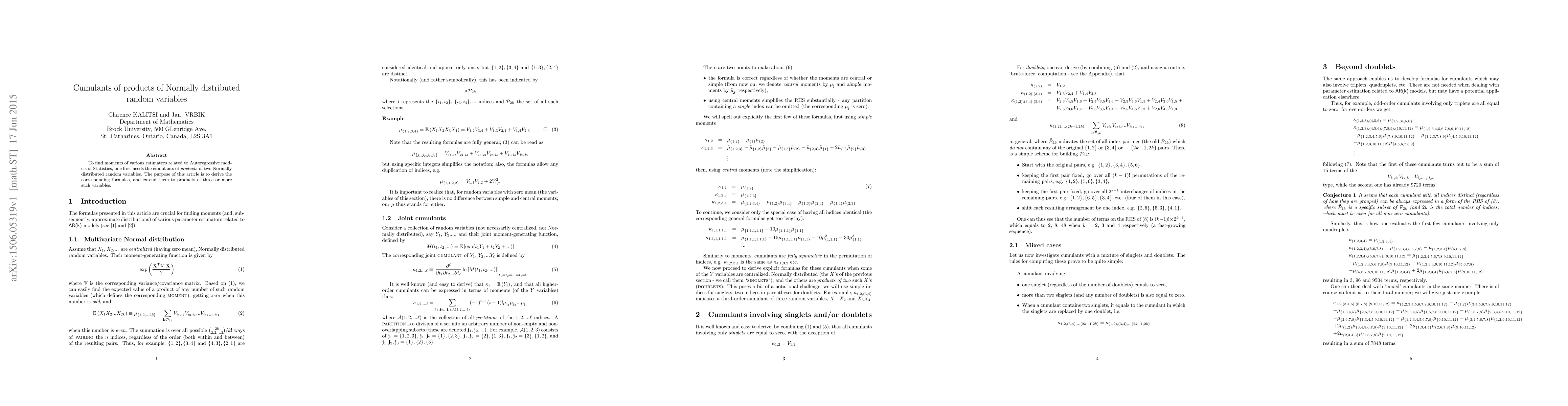 This paper derives formulas for the cumulants of products of Normally distributed random variables, essential for understanding moments of estimators in Autoregressive models. It extends the results to cover products of three or more variables.
