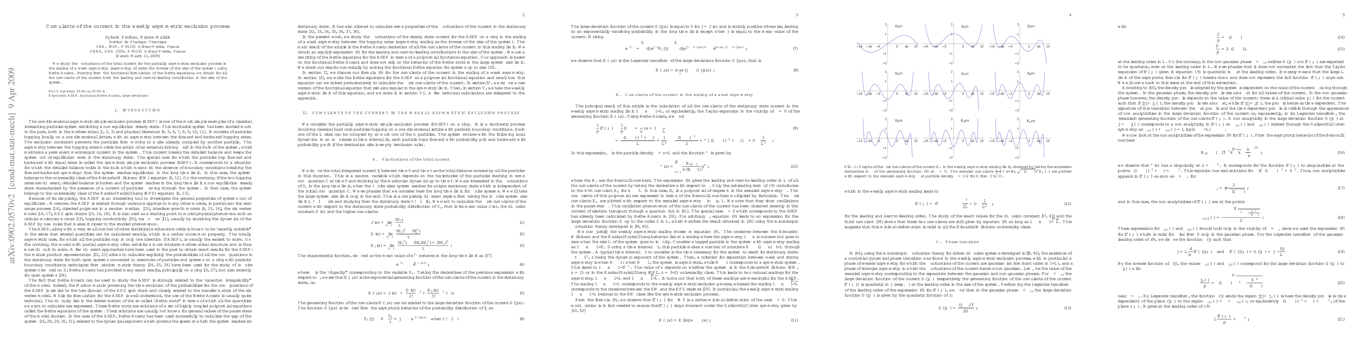 This paper investigates the fluctuations of the total current in the weakly asymmetric exclusion process, deriving both leading and next-to-leading contributions for all cumulants of the current using Bethe Ansatz and functional formulation of the Bethe equations. The study focuses on the scaling behavior under a weak asymmetry.