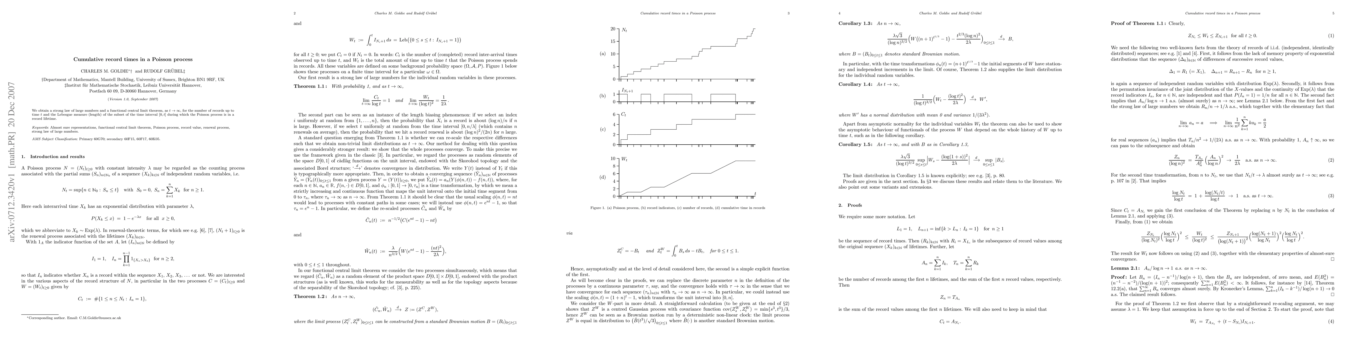 We obtain a strong law of large numbers and a functional central limit theorem, as $t\to\infty$, for the number of records up to time $t$ and the Lebesgue measure (length) of the subset of the time interval $[0,t]$ during which the Poisson process is in a record lifetime.