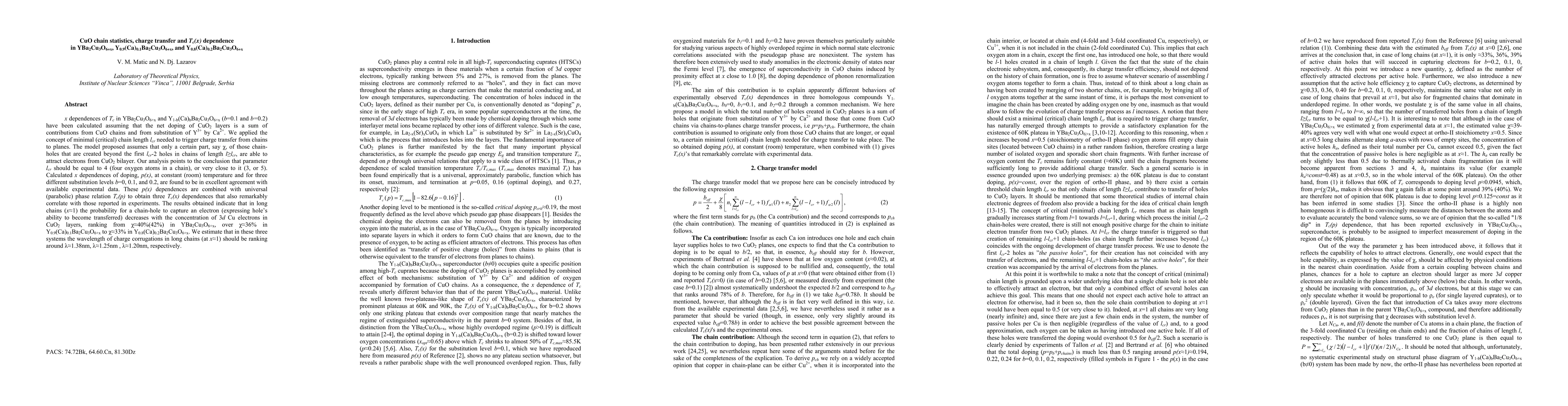 x dependences of Tc in YBa2Cu3O6+x and Y1-b(Ca)bBa2Cu3O6+x (b=0.1 and b=0.2) have been calculated assuming that the net doping of CuO2 layers is a sum of contributions from CuO chains and from substitution of Y3+ by Ca2+. We applied the concept of minimal (critical) chain length lcr needed to trigger charge transfer from chains to planes. The model proposed assumes that only a certain part, say kappa, of those chain-holes that are created beyond the first lcr-2 holes in chains of length l>lcr, are able to attract electrons from CuO2 bilayer. Our analysis points to the conclusion that parameter lcr should be equal to 4 (four oxygen atoms in a chain), or very close to it (3, or 5). Calculated x dependences of doping, p(x), at constant (room) temperature and for three different substitution levels b=0, 0.1, and 0.2, are found to be in excellent agreement with available experimental data. These p(x) dependences are combined with universal (parabolic) phase relation Tc(p) to obtain three Tc(x) dependences that also remarkably correlate with those reported in experiments. The results obtained indicate that in long chains (x=1) the probability for a chain-hole to capture an electron (expressing hole ability to become transferred) decreases with the concentration of 3d Cu electrons in CuO2 layers, ranking from kappa=40%(42%) in YBa2Cu3O6+x, over kappa=36% in Y0.9(Ca)0.1Ba2Cu3O6+x to kappa=33% in Y0.8(Ca)0.2Ba2Cu3O6+x. We estimate that in these three systems the wavelength of charge corrugations in long chains (at x=1) should be ranking around lambda=1.38nm, lambda=1.25nm, lambda=1.20nm, respectively.