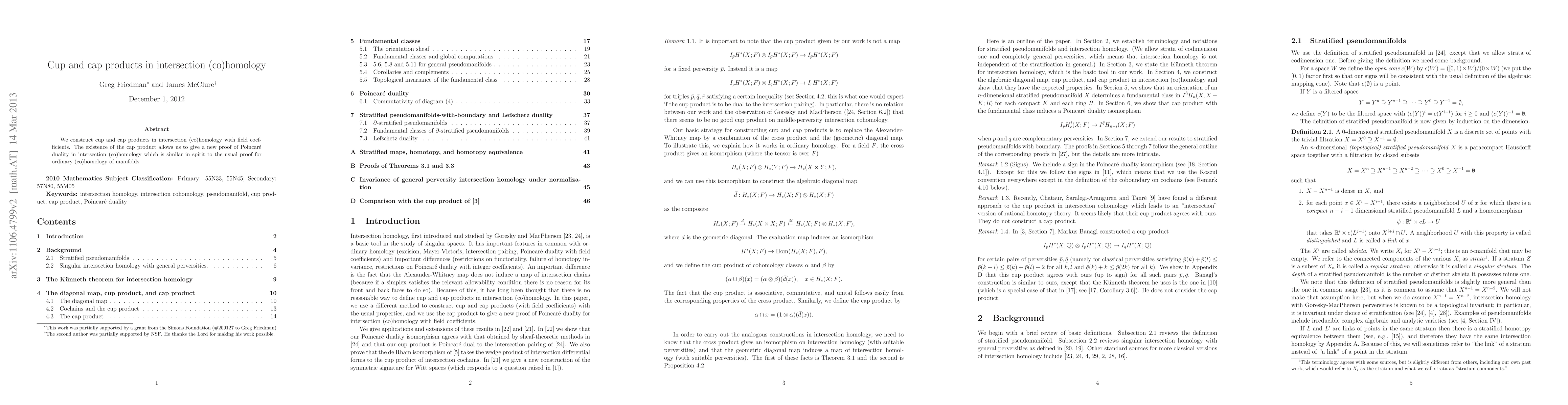 This paper constructs cup and cap products in intersection (co)homology, providing a new proof of Poincaré duality akin to the standard proof for ordinary manifold (co)homology. The cap product's existence facilitates this new approach.