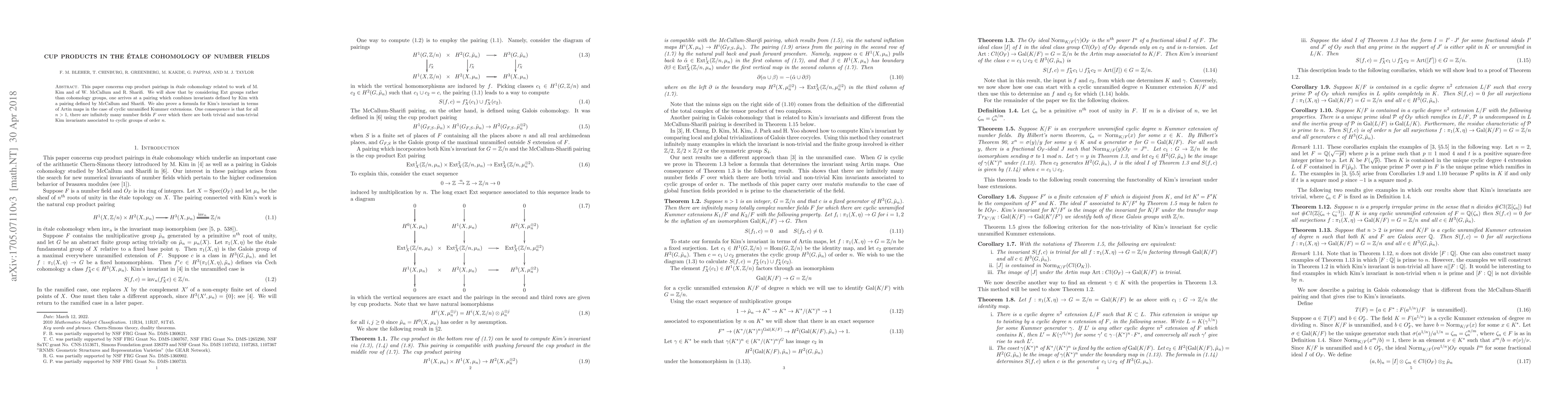 This paper explores cup product pairings in \'etale cohomology, combining invariants from Kim with those from McCallum and Sharifi via Ext groups. It proves a formula for Kim's invariant in cyclic unramified Kummer extensions, leading to the conclusion that for $n > 1$, there exist infinitely many number fields with both trivial and non-trivial Kim invariants for cyclic groups of order $n$.