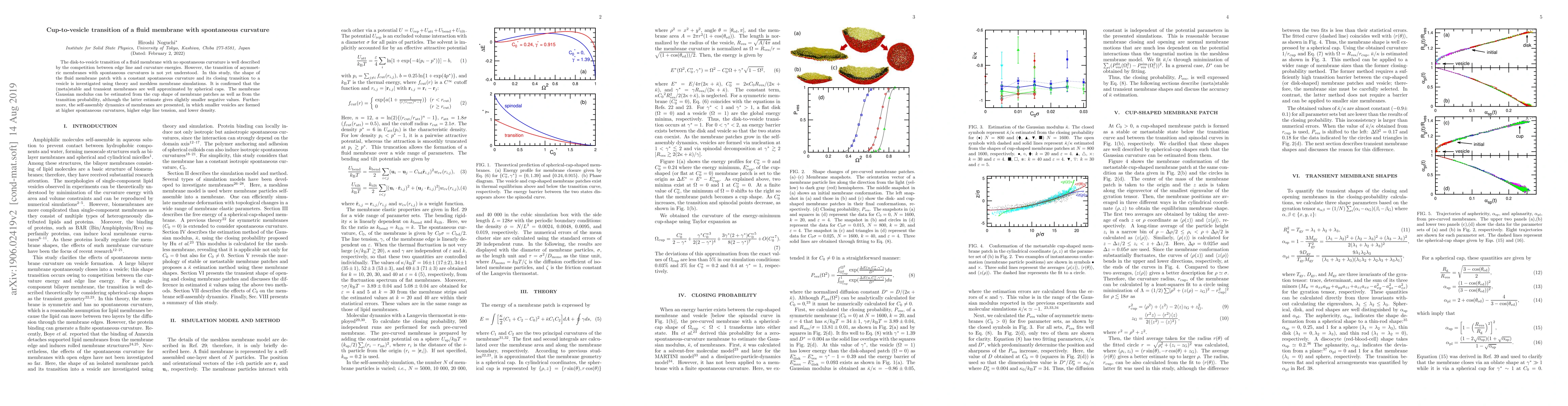 This study explores the cup-to-vesicle transition in fluid membranes with spontaneous curvature, confirming that stable and transient shapes approximate spherical caps. The Gaussian modulus of the membrane is estimated from both the cup shape and transition probabilities, revealing insights into self-assembly dynamics influenced by spontaneous curvature, edge tension, and density.