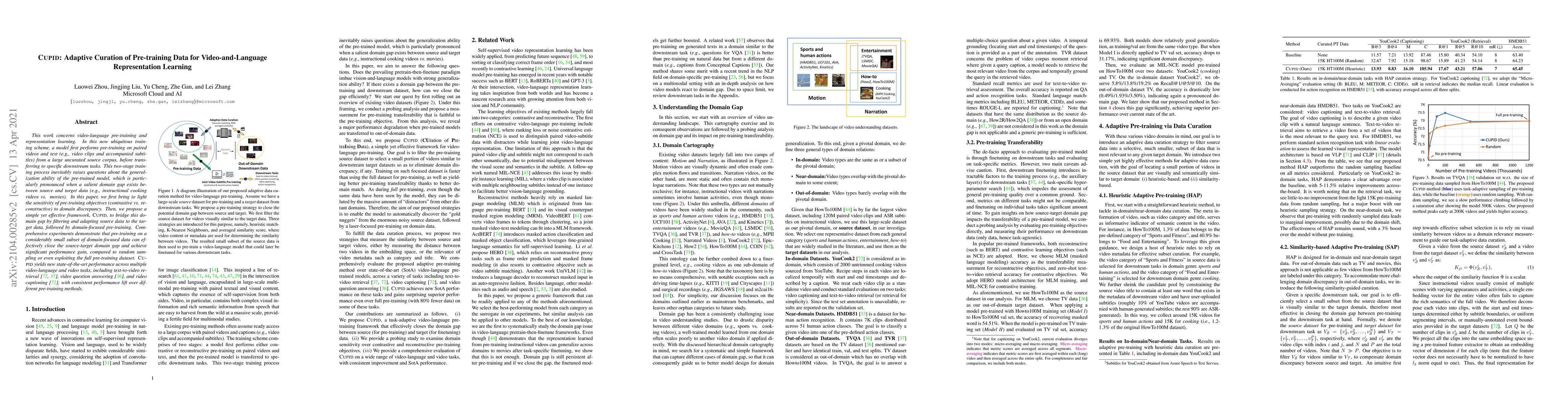Researchers propose CUPID, a framework that adapts pre-training data for video-language representation learning to bridge domain gaps, achieving state-of-the-art performance on multiple tasks.