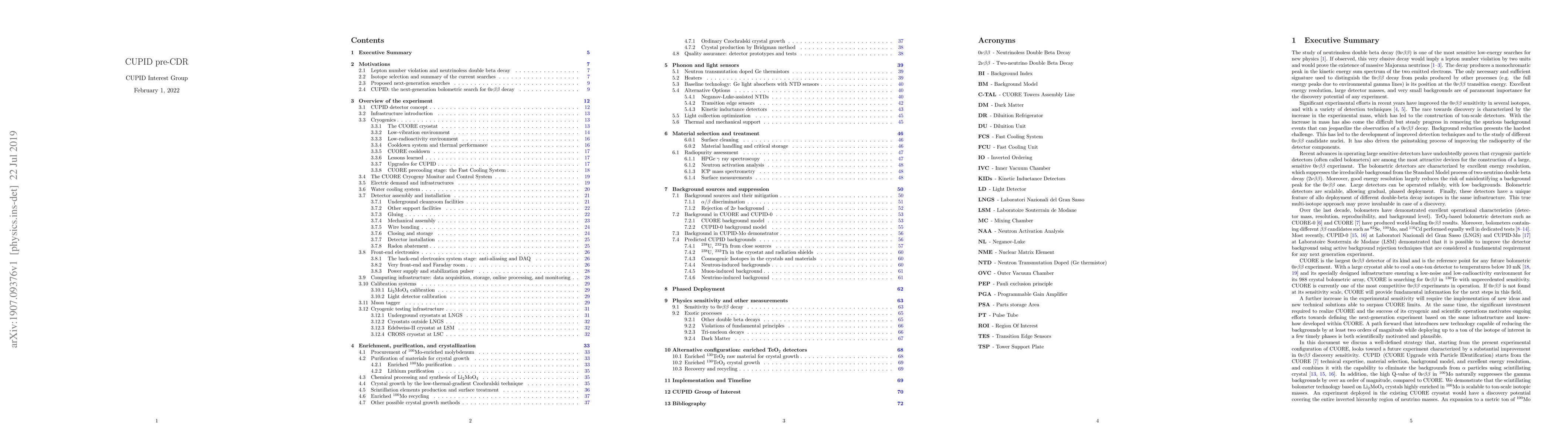 CUPID is a proposed future tonne-scale bolometric neutrinoless double beta decay ($0\nu\beta\beta$) experiment to probe the Majorana nature of neutrinos and discover Lepton Number Violation in the so-called inverted hierarchy region of the neutrino mass. CUPID will be built on experience, expertise and lessons learned in CUORE, and will exploit the current CUORE infrastructure as much as possible. In order to achieve its ambitious science goals, CUPID aims to dramatically reduce the backgrounds in the region of interest introducing a high efficiently $\alpha$/$\beta$ discrimination techniques, also demonstrated by the CUPID-0 and CUPID-Mo experiments, and using a high transition energy double beta decay nucleus, $^{100}$Mo. This document describe the main concepts related with the design of the CUPID experiment and indicates the projected sensitivities and the global scientific goal of the experiment.