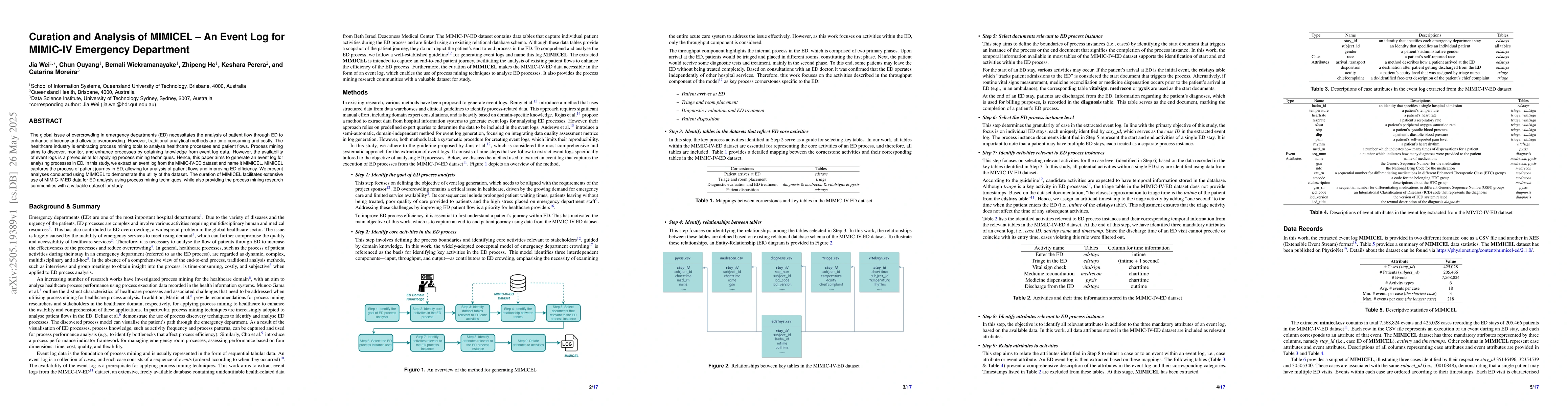 A new event log called MIMICEL is created from the MIMIC-IV-ED dataset to analyze patient flow in emergency departments, providing insights to improve efficiency and alleviate overcrowding.