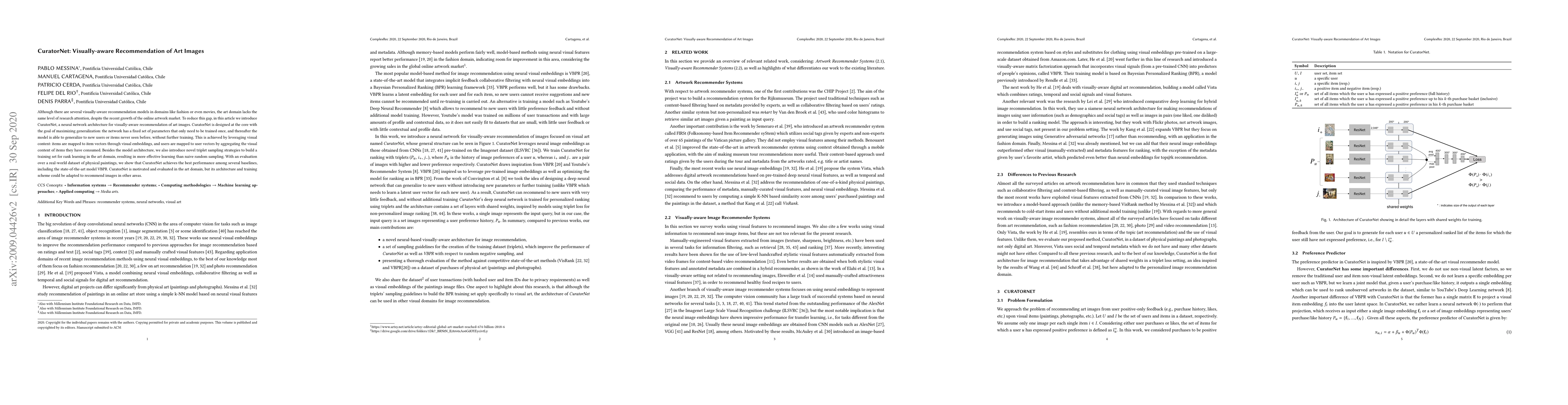 CuratorNet introduces a neural network architecture for visually-aware recommendation of art images, designed to generalize to new users and items without further training. It employs visual embeddings and novel triplet sampling strategies for effective learning, outperforming baselines in recommendations for physical paintings.