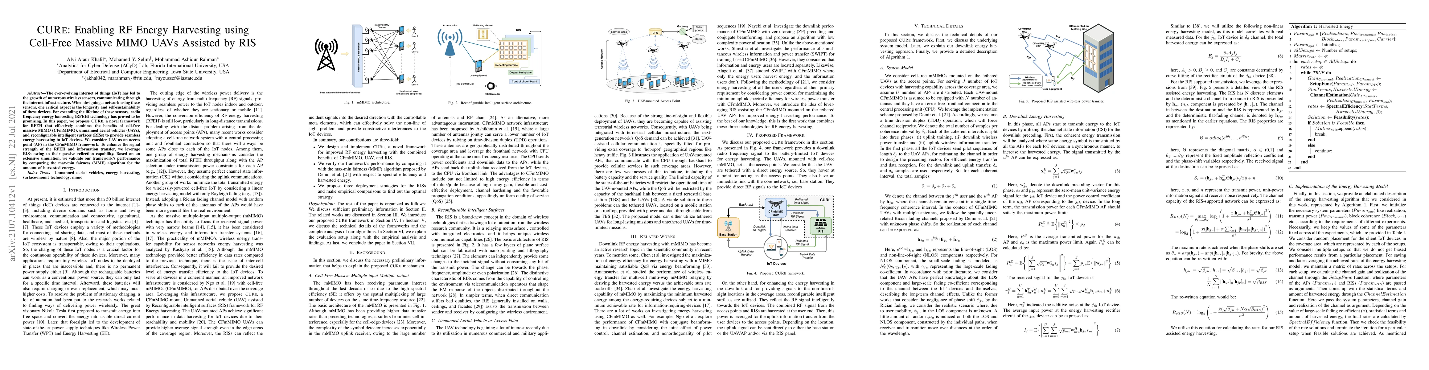 Researchers propose a new framework called CURE that harnesses energy from cell-free massive MIMO UAVs with RIS to extend the lifetime of IoT devices. The method improves signal strength for both energy harvesting and information transfer.