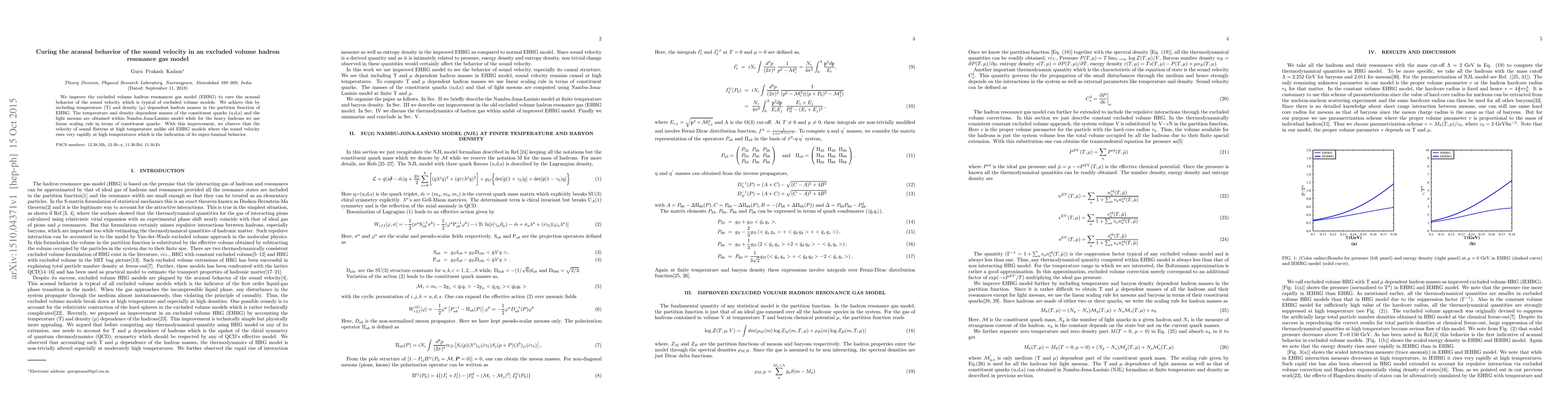 This paper improves the excluded volume hadron resonance gas model (EHRG) by incorporating temperature and density-dependent hadron masses, derived from the Nambu-Jona-Lasinio model and linear scaling rules, to correct the acausal behavior of sound velocity. The revised model shows a flattened sound velocity at high temperatures, resolving the super-luminal issue present in older EHRG models.