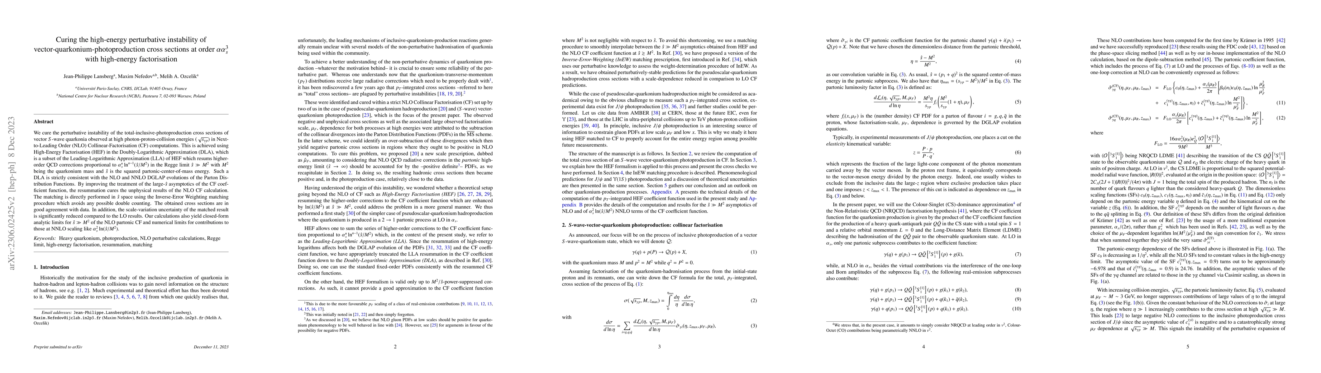 This paper addresses the perturbative instability in high-energy vector quarkonium photoproduction cross sections using High-Energy Factorisation (HEF) in the Doubly-Logarithmic Approximation (DLA). The method improves the treatment of large-$\hat{s}$ asymptotics, leading to results that agree with data and significantly reduce scale-variation uncertainties.
