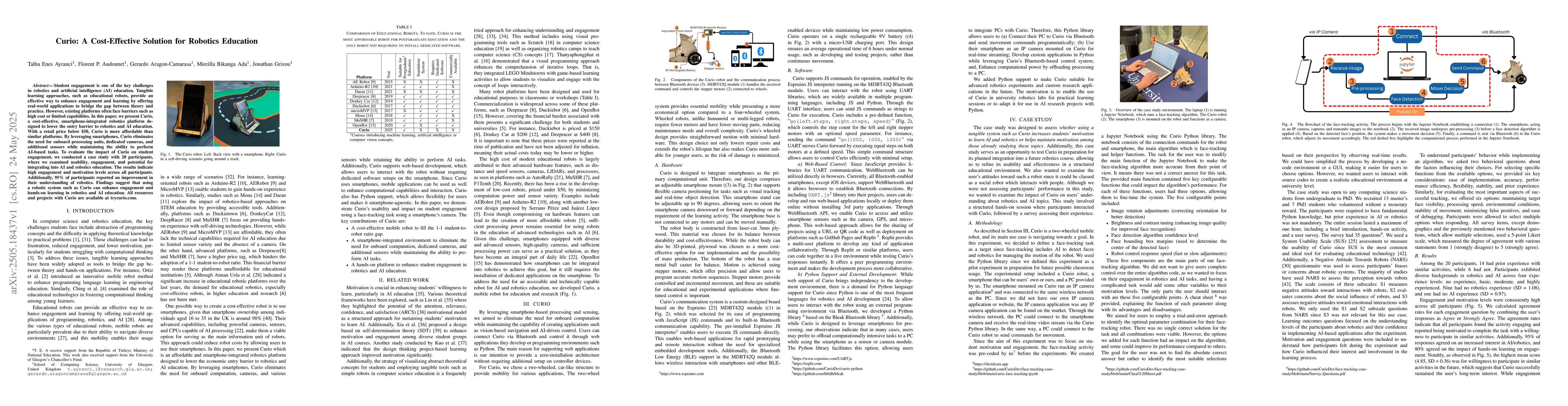 The paper presents Curio, a cost-effective robotics platform, and evaluates its impact on student engagement through a case study with 20 participants, examining usability, engagement, and integration into AI and robotics education.