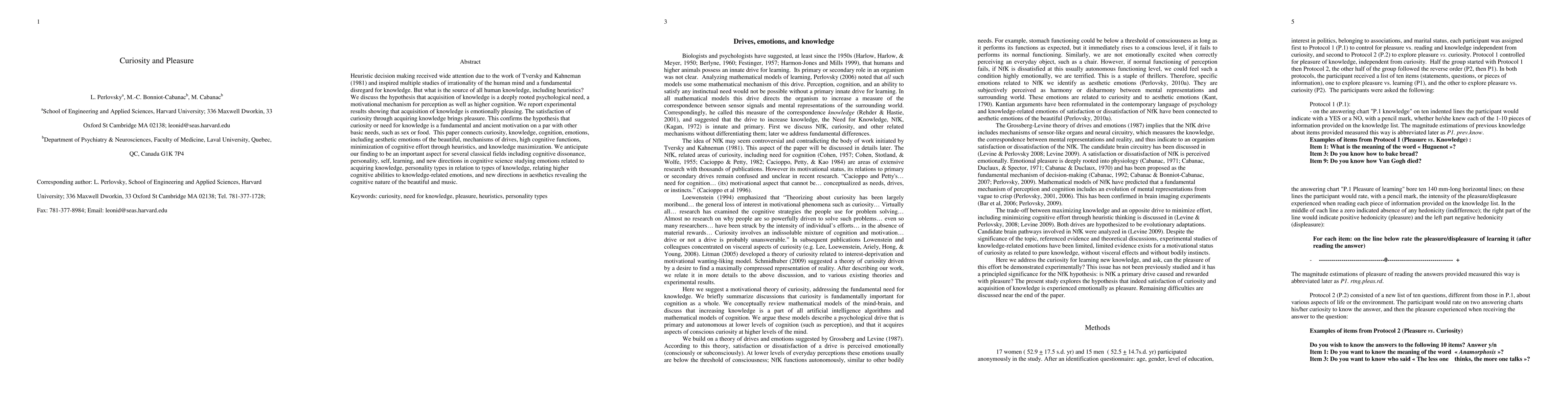 This paper proposes that acquiring knowledge is emotionally pleasing, confirming curiosity as a fundamental motivation. It connects curiosity, knowledge, cognition, emotions, and high cognitive functions, suggesting implications for fields like cognitive dissonance, personality, learning, and aesthetics.