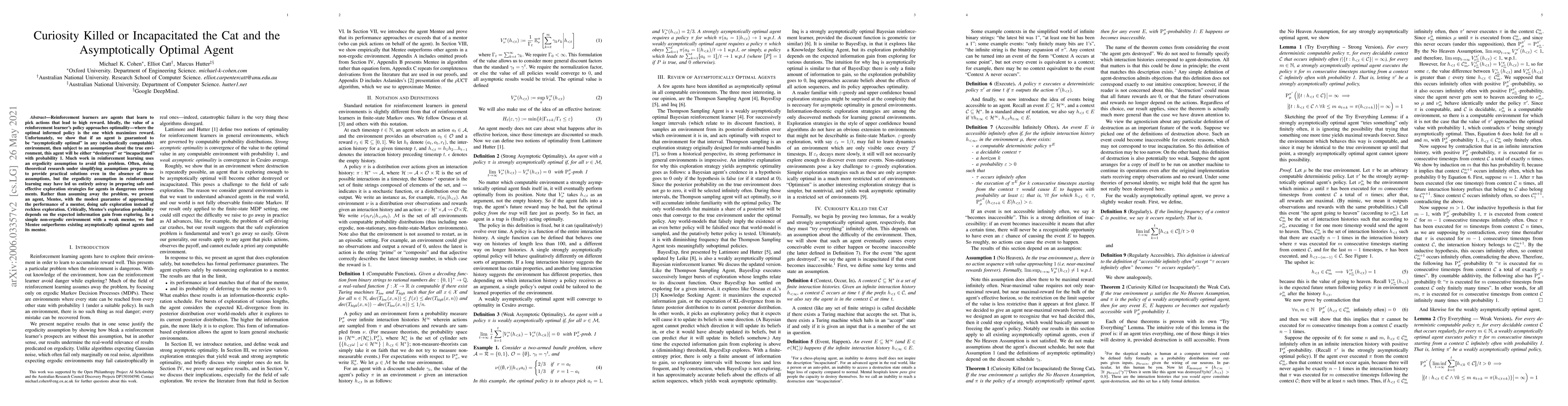 Reinforcement learners are agents that learn to pick actions that lead to high reward. Ideally, the value of a reinforcement learner's policy approaches optimality--where the optimal informed policy is the one which maximizes reward. Unfortunately, we show that if an agent is guaranteed to be "asymptotically optimal" in any (stochastically computable) environment, then subject to an assumption about the true environment, this agent will be either "destroyed" or "incapacitated" with probability 1. Much work in reinforcement learning uses an ergodicity assumption to avoid this problem. Often, doing theoretical research under simplifying assumptions prepares us to provide practical solutions even in the absence of those assumptions, but the ergodicity assumption in reinforcement learning may have led us entirely astray in preparing safe and effective exploration strategies for agents in dangerous environments. Rather than assuming away the problem, we present an agent, Mentee, with the modest guarantee of approaching the performance of a mentor, doing safe exploration instead of reckless exploration. Critically, Mentee's exploration probability depends on the expected information gain from exploring. In a simple non-ergodic environment with a weak mentor, we find Mentee outperforms existing asymptotically optimal agents and its mentor.