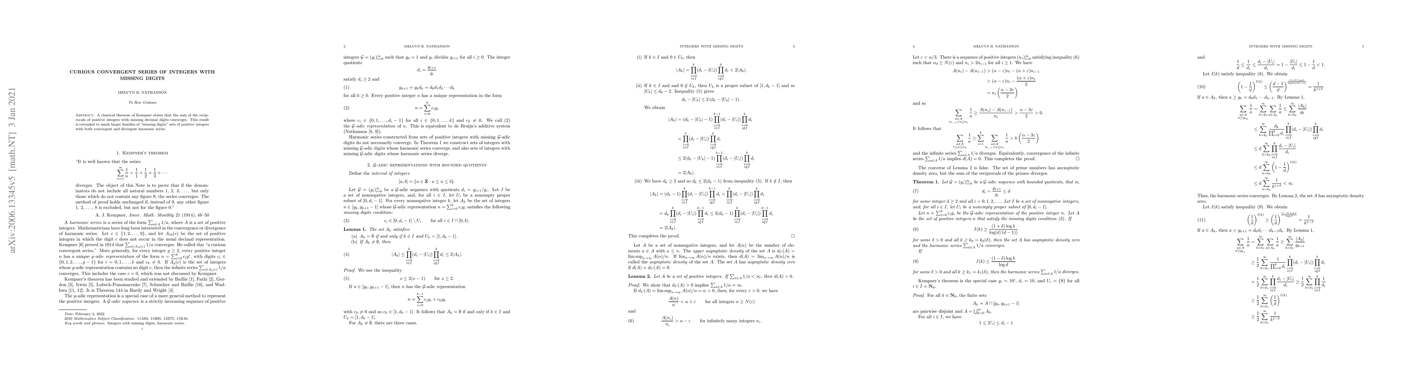 The paper extends Kempner's theorem on convergent harmonic series of integers with missing decimal digits to larger families of 'missing digits' sets of positive integers, analyzing both convergent and divergent harmonic series under various conditions.