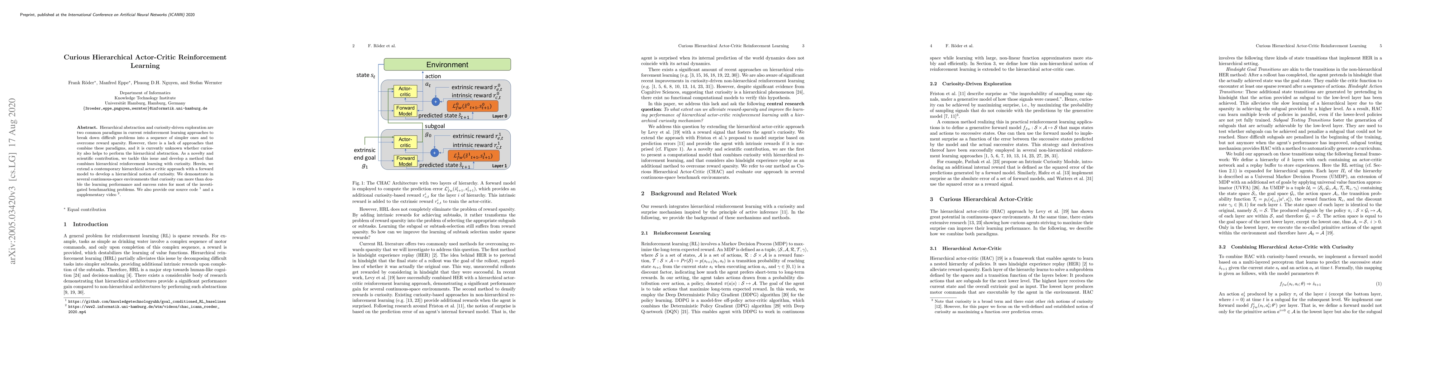 This paper introduces a novel hierarchical actor-critic reinforcement learning method that integrates curiosity-driven exploration to enhance performance. The approach combines hierarchical abstraction with curiosity, significantly improving learning outcomes in continuous-space environments.