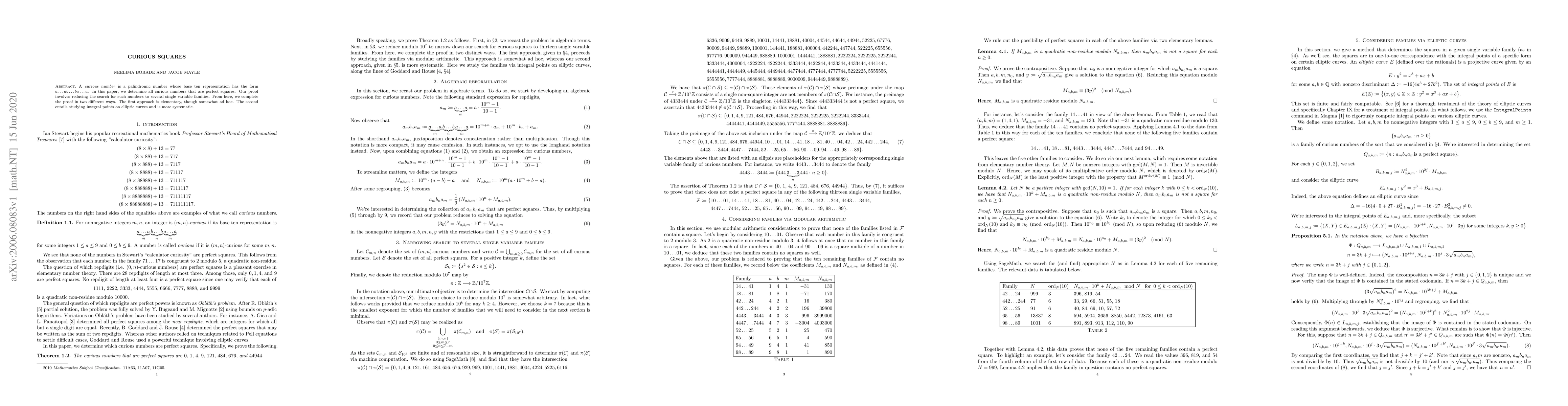 This paper identifies all perfect square curious numbers, defined as palindromic numbers with the form $a \ldots a b \ldots b a \ldots a$. The proof is structured in two parts: an elementary approach and a systematic one involving elliptic curves.