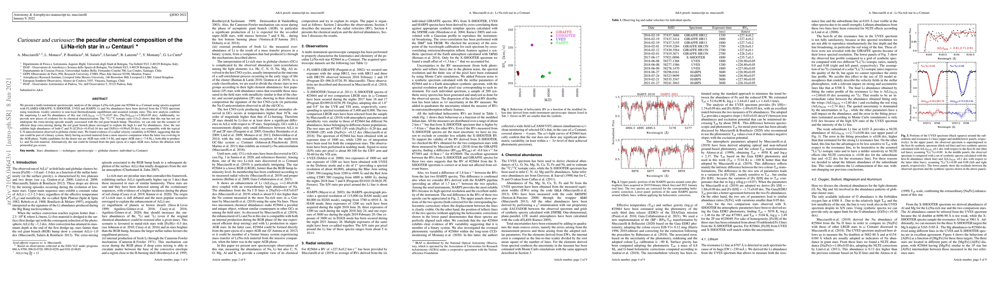 This paper presents a detailed spectroscopic analysis of the Li/Na-rich giant star 25664 in Omega Centauri, confirming its unusual chemical composition and ruling out deep extra-mixing. The star's high C and N abundances suggest it may have accreted material from a binary companion or formed from a super-AGB star's ejecta.
