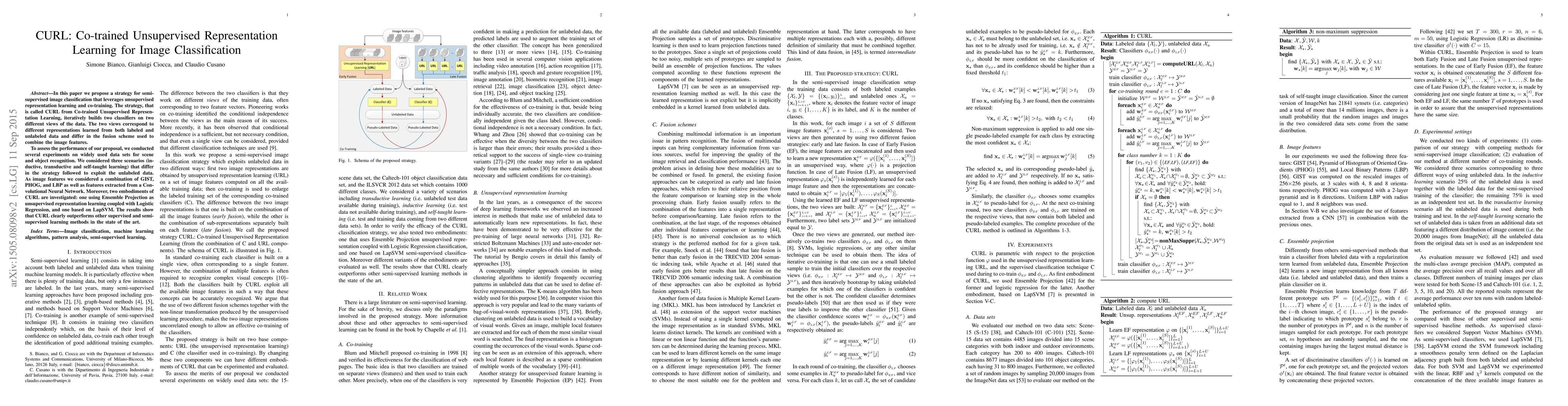 The paper introduces CURL, a co-trained unsupervised representation learning approach for semi-supervised image classification, employing iterative classifiers based on different data representations and achieving superior performance over other state-of-the-art methods in various learning scenarios.