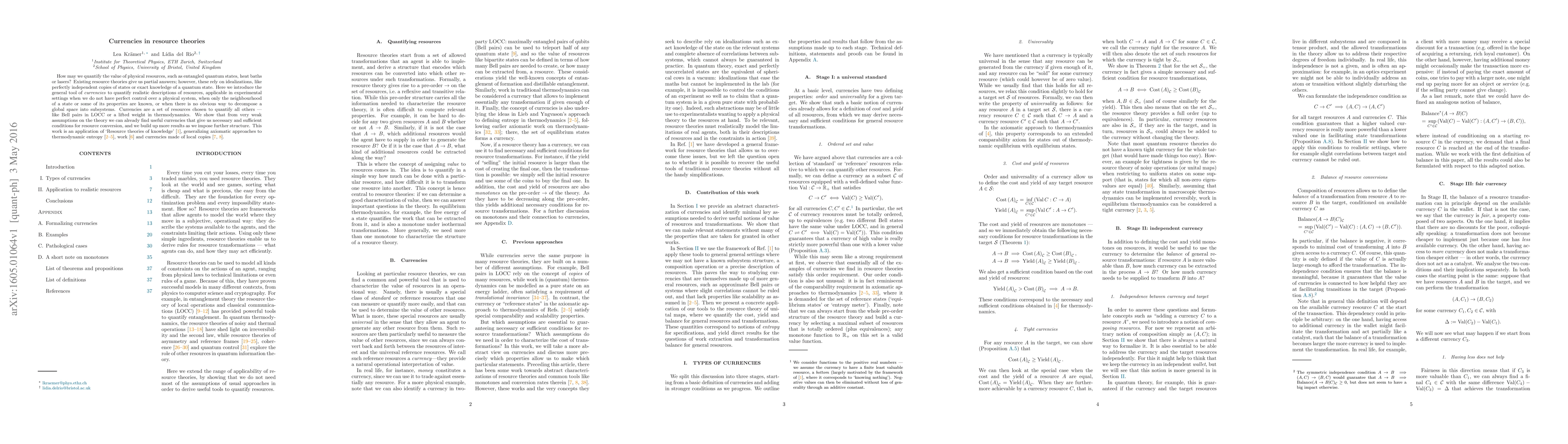 How may we quantify the value of physical resources, such as entangled quantum states, heat baths or lasers? Existing resource theories give us partial answers; however, these rely on idealizations, like perfectly independent copies of states or exact knowledge of a quantum state. Here we introduce the general tool of currencies to quantify realistic descriptions of resources, applicable in experimental settings when we do not have perfect control over a physical system, when only the neighbourhood of a state or some of its properties are known, or when there is no obvious way to decompose a global space into subsystems. Currencies are a special set of resources chosen to quantify all others - like Bell pairs in LOCC or a lifted weight in thermodynamics. We show that from very weak assumptions on the theory we can already find useful currencies that give us necessary and sufficient conditions for resource conversion, and we build up more results as we impose further structure. This work is an application of Resource theories of knowledge [arXiv:1511.08818], generalizing axiomatic approaches to thermodynamic entropy, work and currencies made of local copies.