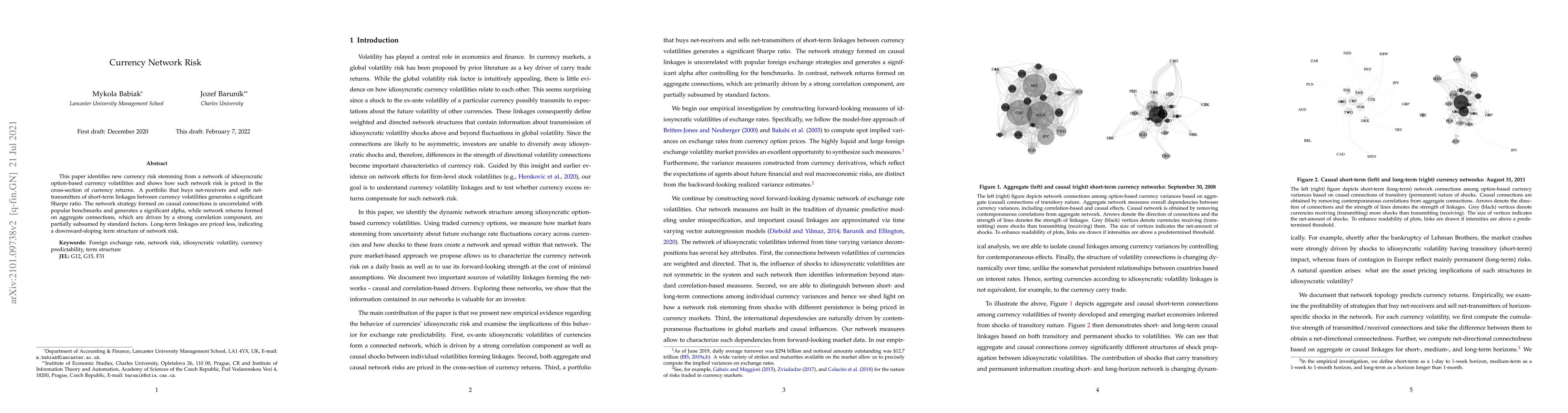 This paper identifies new currency risk stemming from a network of idiosyncratic option-based currency volatilities and shows how such network risk is priced in the cross-section of currency returns. A portfolio that buys net-receivers and sells net-transmitters of short-term linkages between currency volatilities generates a significant Sharpe ratio. The network strategy formed on causal connections is uncorrelated with popular benchmarks and generates a significant alpha, while network returns formed on aggregate connections, which are driven by a strong correlation component, are partially subsumed by standard factors. Long-term linkages are priced less, indicating a downward-sloping term structure of network risk.