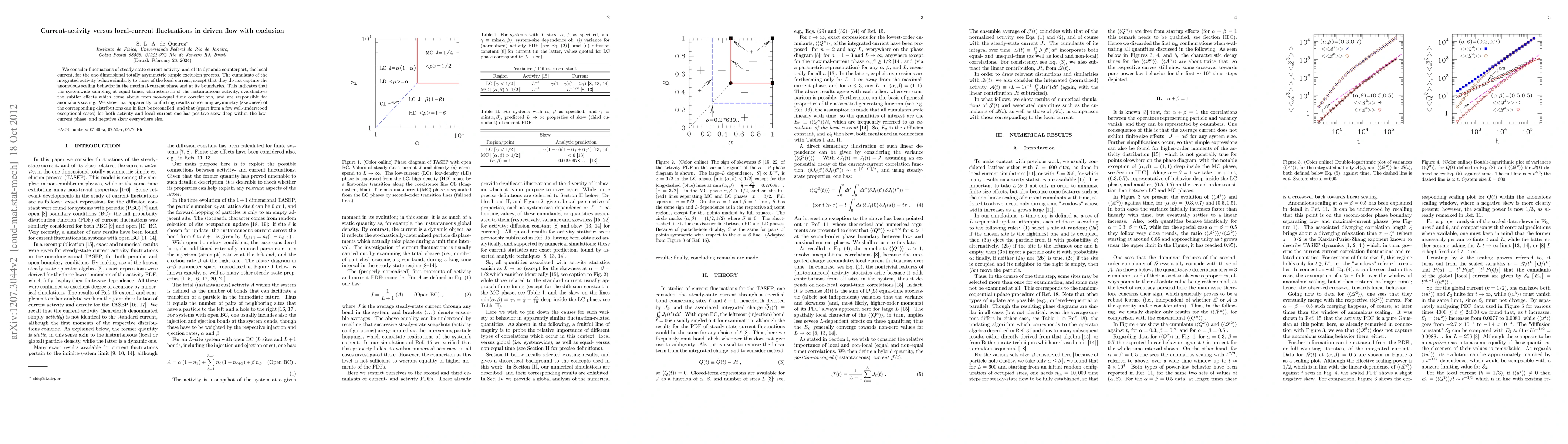 Research on the one-dimensional totally asymmetric simple exclusion process shows that steady-state current activity and local current exhibit positive skew within low-current phases, but negative skew elsewhere. This reveals the limitations of instantaneous sampling in capturing anomalous scaling behavior.