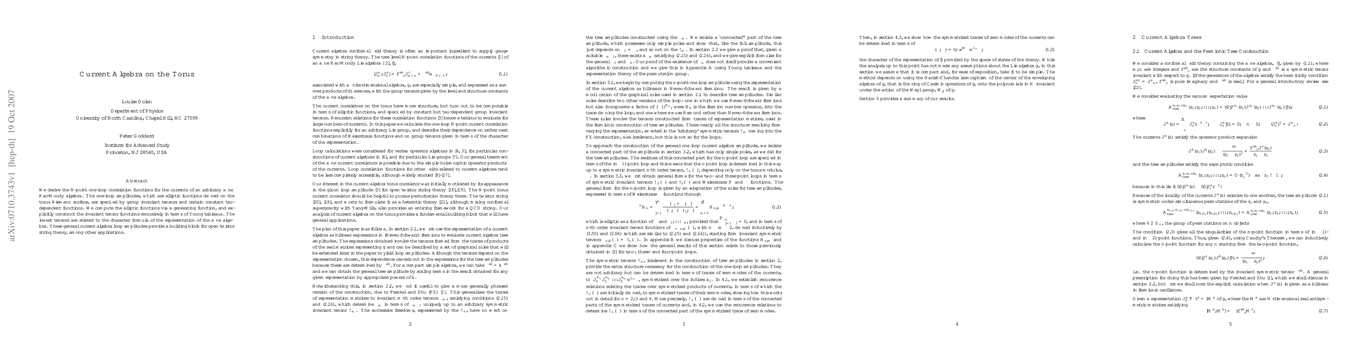 This paper derives N-point one-loop correlation functions for affine Kac-Moody algebra currents on a torus, using elliptic functions specified by group invariant tensors and constant functions. The study employs a generating function and recursive construction of invariant tensors via Young tableaux, linking them to the affine algebra's character formula, and highlights their significance in open twistor string theory.