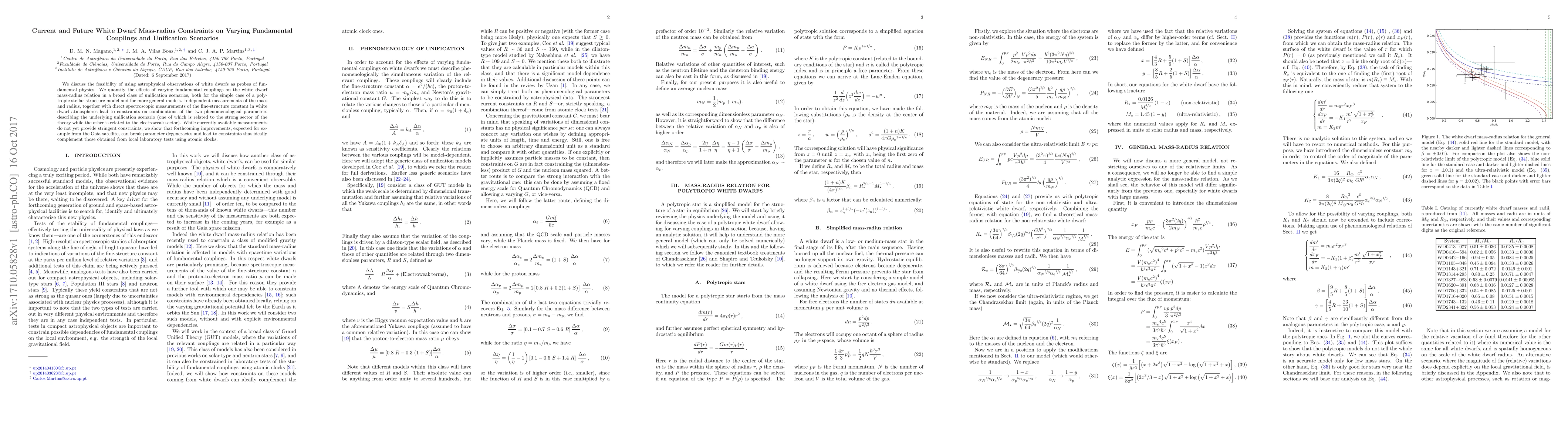 This paper explores the potential of white dwarf observations to probe fundamental physics by examining how varying fundamental couplings affect their mass-radius relation. It highlights that future improvements in astrophysical measurements, such as those from the Gaia satellite, could provide stringent constraints on unification scenarios, complementing laboratory tests.