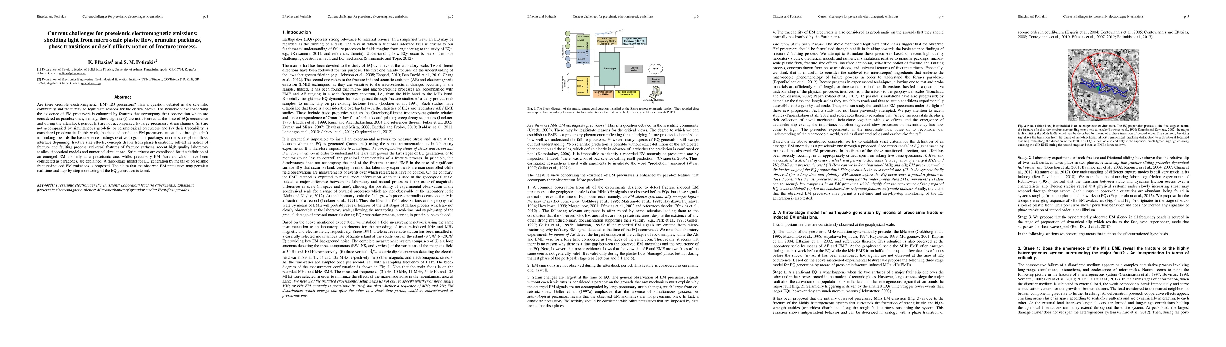 Are there credible electromagnetic (EM) EQ precursors? This a question debated in the scientific community and there may be legitimate reasons for the critical views. The negative view concerning the existence of EM precursors is enhanced by features that accompany their observation which are considered as paradox ones, namely, these signals: (i) are not observed at the time of EQs occurrence and during the aftershock period, (ii) are not accompanied by large precursory strain changes, (iii) are not accompanied by simultaneous geodetic or seismological precursors and (v) their traceability is considered problematic. In this work, the detected candidate EM precursors are studied through a shift in thinking towards the basic science findings relative to granular packings, micron-scale plastic flow, interface depinning, fracture size effects, concepts drawn from phase transitions, self-affine notion of fracture and faulting process, universal features of fracture surfaces, recent high quality laboratory studies, theoretical models and numerical simulations. Strict criteria are established for the definition of an emerged EM anomaly as a preseismic one, while, precursory EM features, which have been considered as paradoxes, are explained. A three-stage model for EQ generation by means of preseismic fracture-induced EM emissions is proposed. The claim that the observed EM precursors may permit a real-time and step-by-step monitoring of the EQ generation is tested.