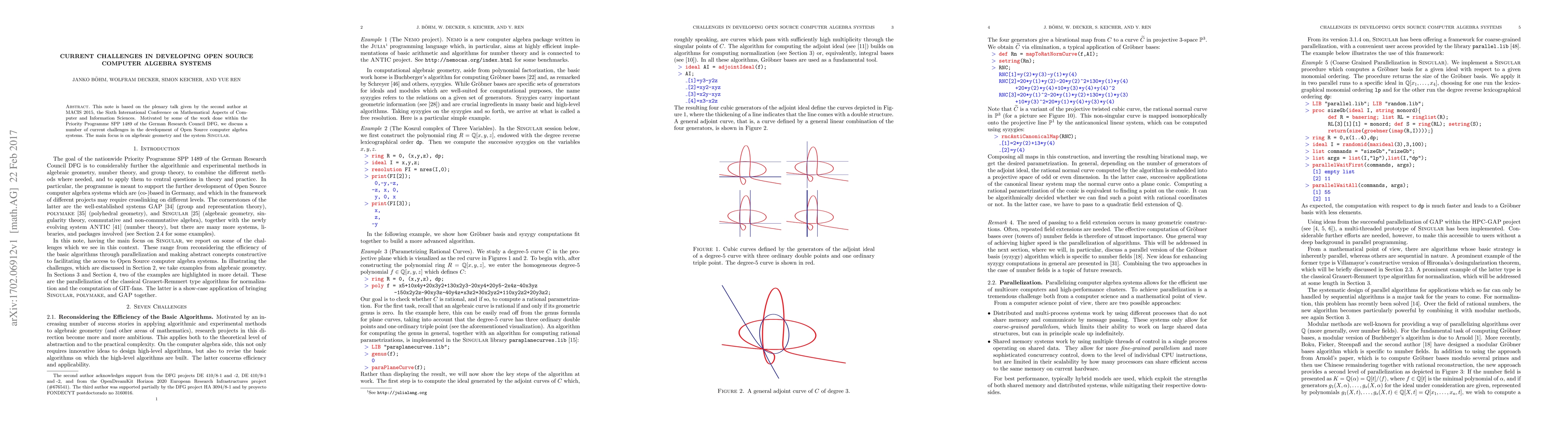 This paper discusses current challenges in developing open source computer algebra systems, particularly focusing on algebraic geometry and the system Singular. It highlights issues faced within the Priority Programme SPP 1489 of the German Research Council DFG.