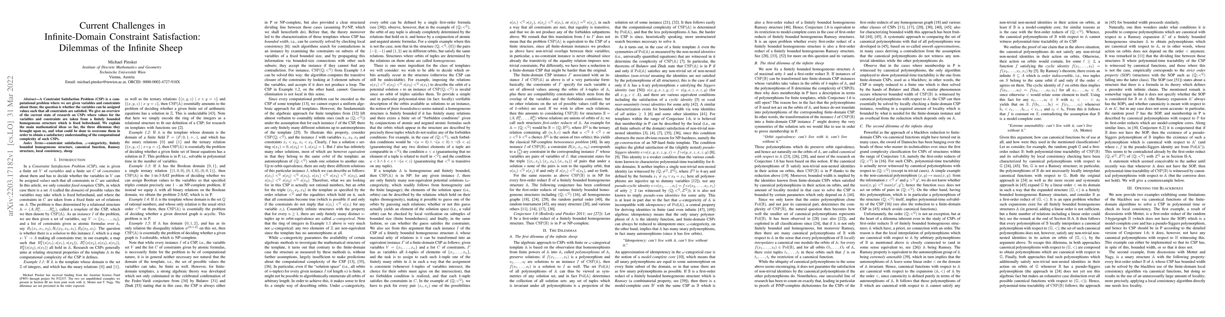 A Constraint Satisfaction Problem (CSP) is a computational problem where we are given variables and constraints about them; the question is whether the variables can be assigned values such that all constraints are satisfied. We give an overview of the current state of research on CSPs where values for the variables and constraints are taken from a finitely bounded homogeneous structure which is fixed beforehand. We explain the main mathematical ideas so far, the three dilemmas they brought upon us, and what could be done to overcome them in order to obtain a satisfactory understanding of the computational complexity of such CSPs.